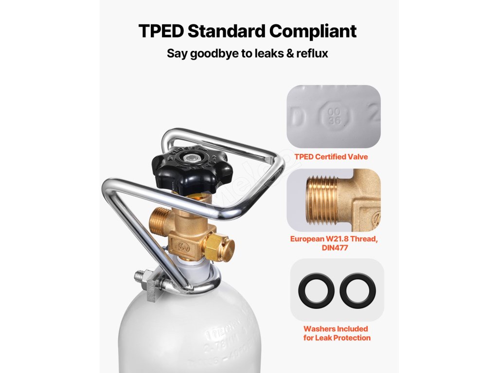 Naša nová nádrž na CO2, vybavená predinštalovaným ventilom s certifikátom TPED a vonkajším závitom pre regulátory CO2, poskytuje bezproblémovú kompatibilitu s rôznymi aplikáciami a zariadeniami.