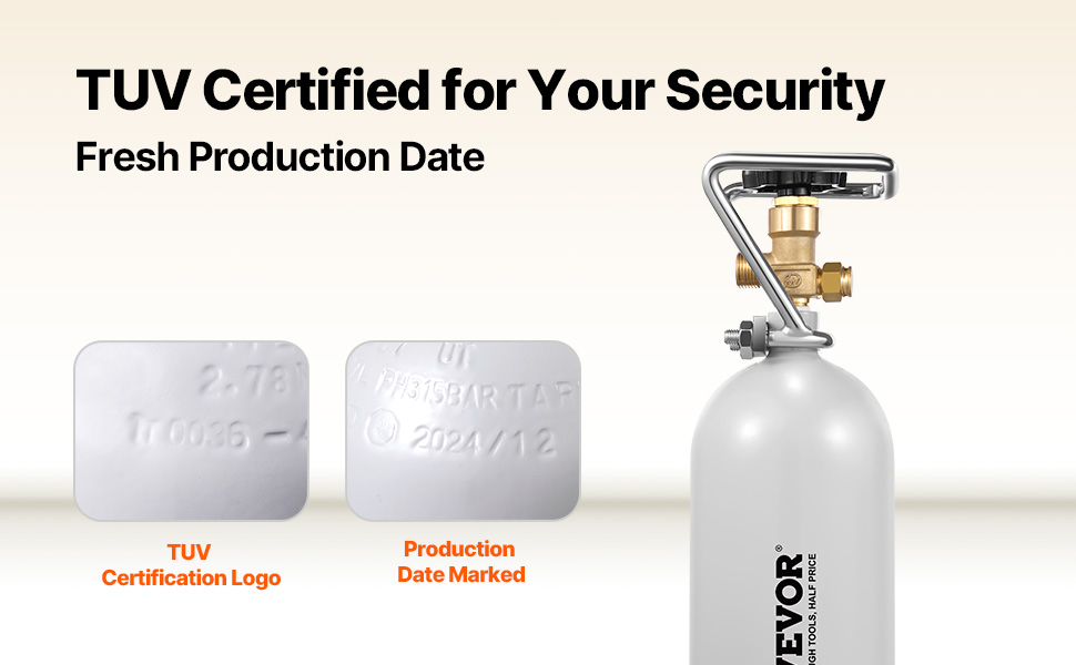 Naša plynová nádrž na CO2 je schválená TUV a je vybavená všetkými potrebnými vonkajšími značkami. Každá jednotka je označená čerstvým dátumom výroby, čo zaručuje, že dostanete úplne novú, spoľahlivú nádrž na CO2.