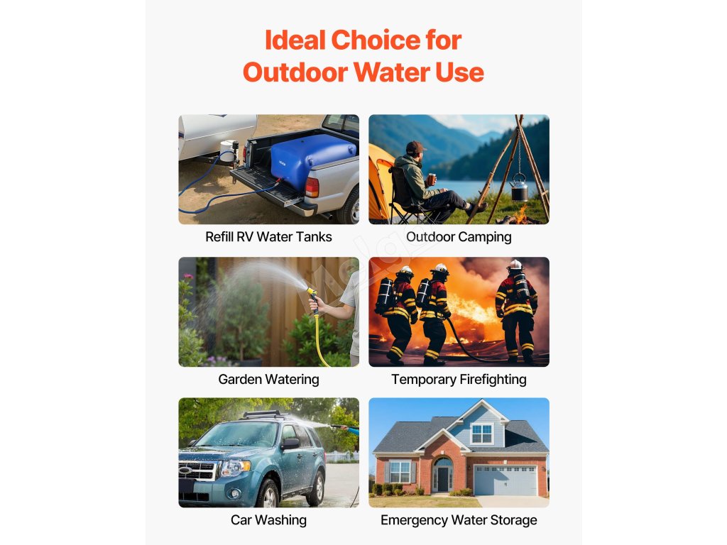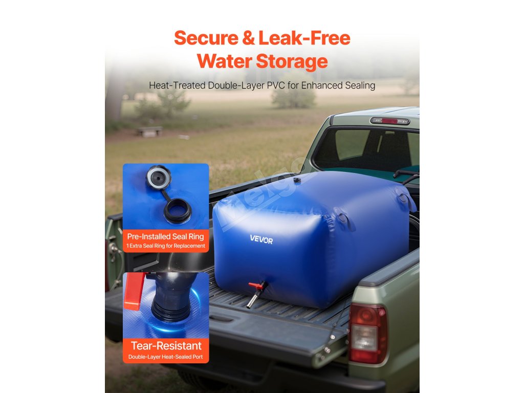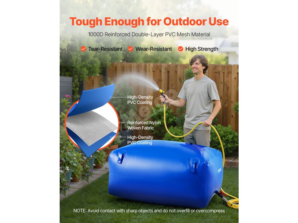 Tento skladací vak na vodu s objemom 105,7 galónov je viacúčelovým riešením na skladovanie vody, ktoré zabezpečuje spoľahlivé zásobovanie vodou v exteriéri.