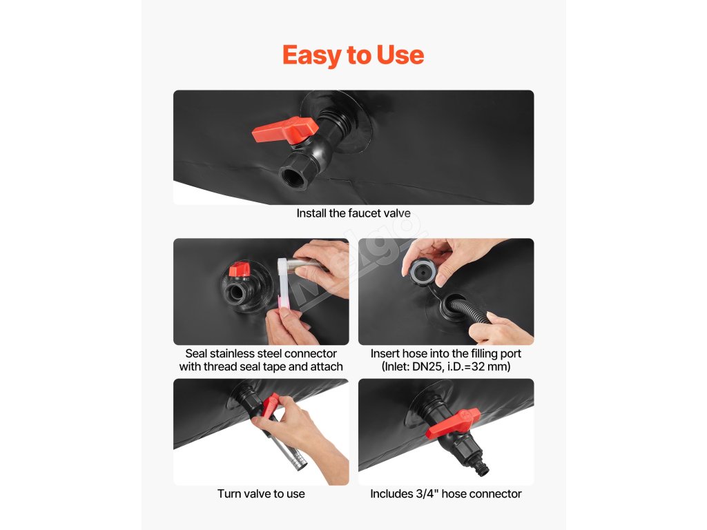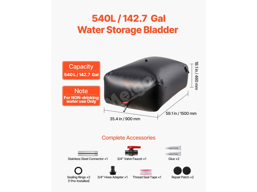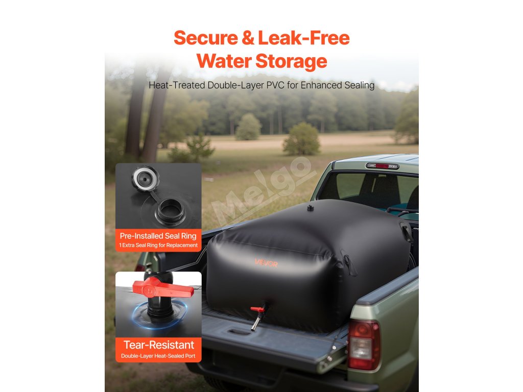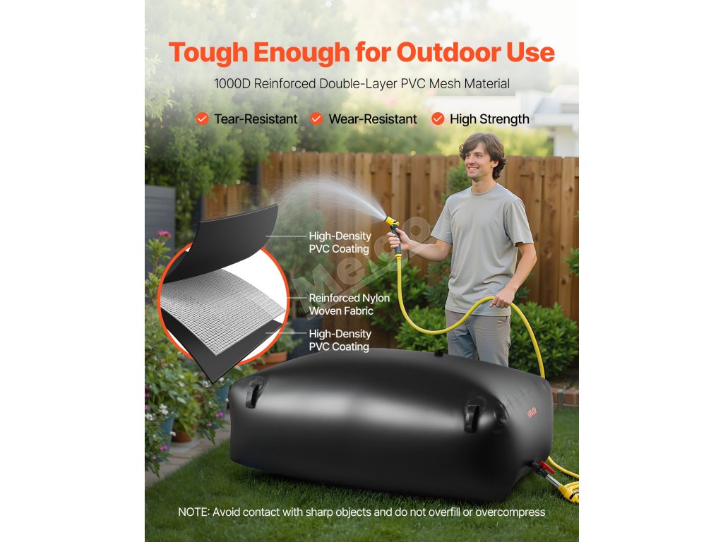 Tento skladací vak na vodu s objemom 142,7 galónov je viacúčelovým riešením na skladovanie vody, ktoré zabezpečuje spoľahlivé zásobovanie vodou v exteriéri.