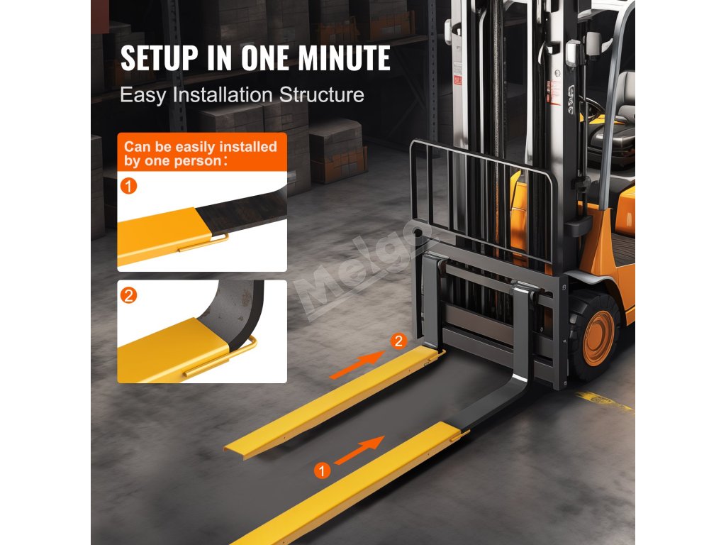 Tieto predĺženia vidlíc vysokozdvižných vozíkov sú vyrobené z priemyselne odolnej uhlíkovej ocele. Sú skonštruované ako tank a pripravené zvládnuť ťažkú prácu bez toho, aby sa zapotili. Jednodielna konštrukcia zaručuje, že zostanú pevné a stabilné, nedochádza tu k žiadnemu ohýbaniu ani deformácii!