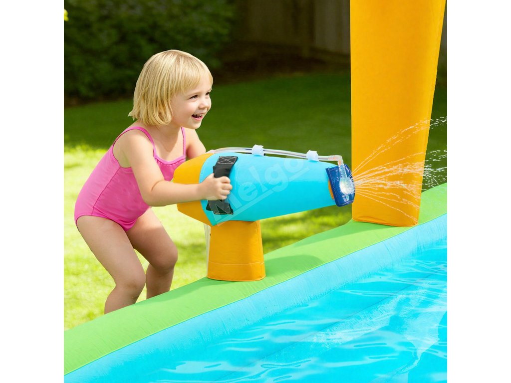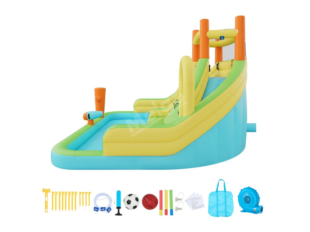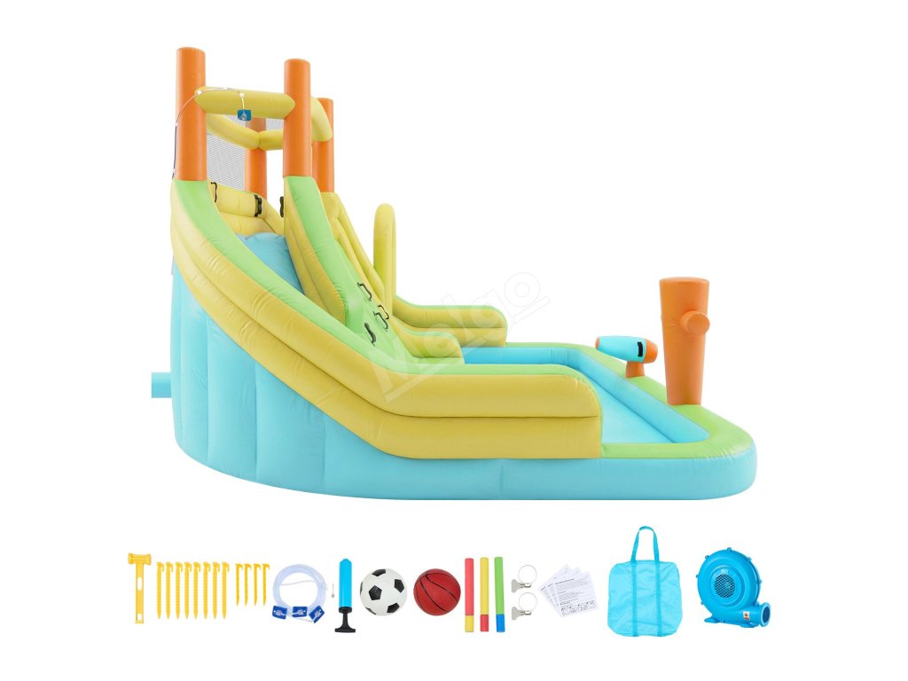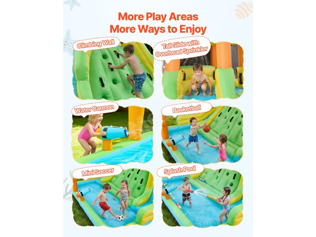 Tento nafukovací vodný hrad s veľkou skákacou plochou a hladkou šmýkačkou ponúka deťom a rodinám viacero spôsobov, ako si užiť spoločnú zábavu. Inovatívna basketbalová hra pridáva interaktívnu zábavu, vďaka čomu si deti môžu užiť hravé chvíle a skupinové aktivity s priateľmi počas hry vonku.