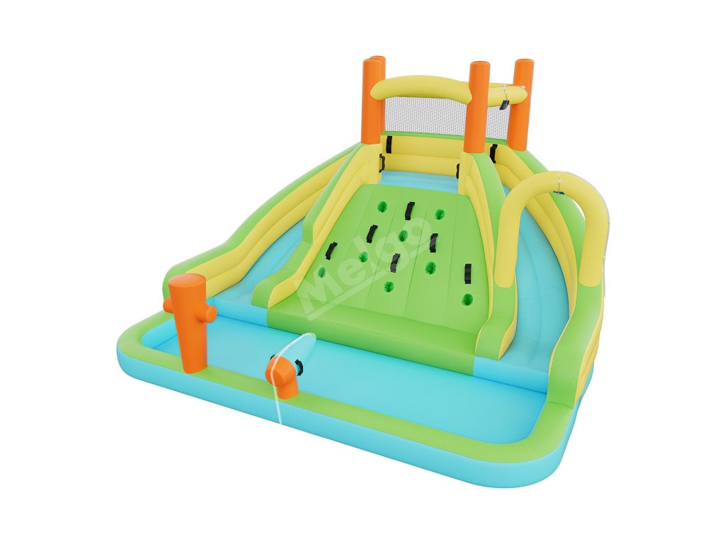 Náš nafukovací skákací hrad na suché aj mokré použitie je ideálny na narodeniny, letné posedenia a každodennú zábavu na dvore. Je vybavený lezeckou stenou, bazénom a ďalšími atrakciami. Je vyrobený z hrubého materiálu Oxford 840D+420D a má zosilnené dvojité švy. Je vybavený sieťkou po celom obvode, ktorá zaisťuje dobrú viditeľnosť.