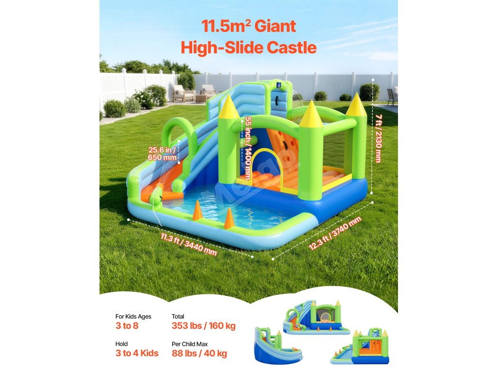 Nafukovací skákací hrad so šmýkačkou 11.3×12.3×7.0 ft pre 3–8 rokov