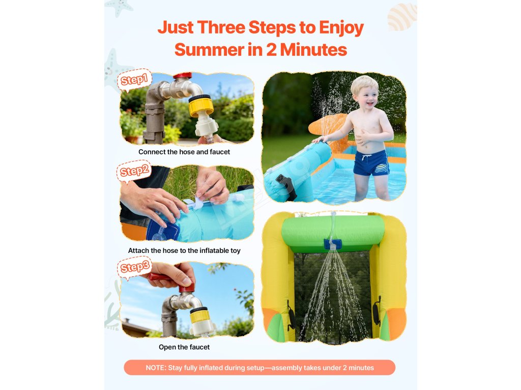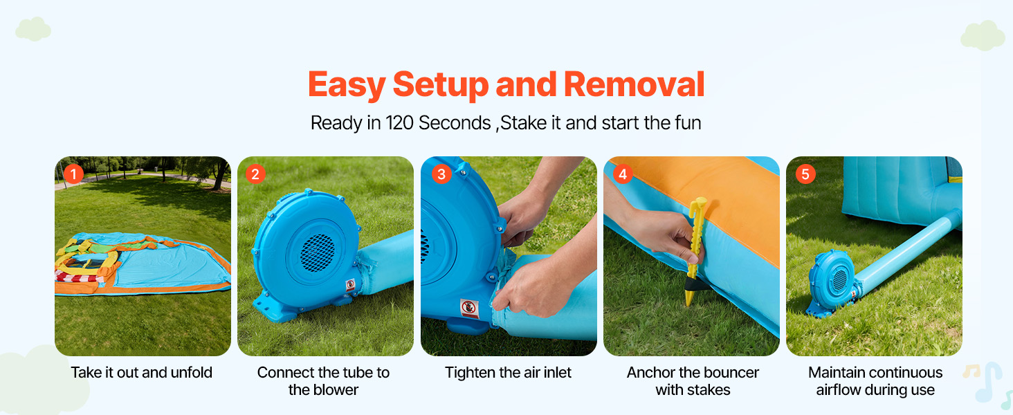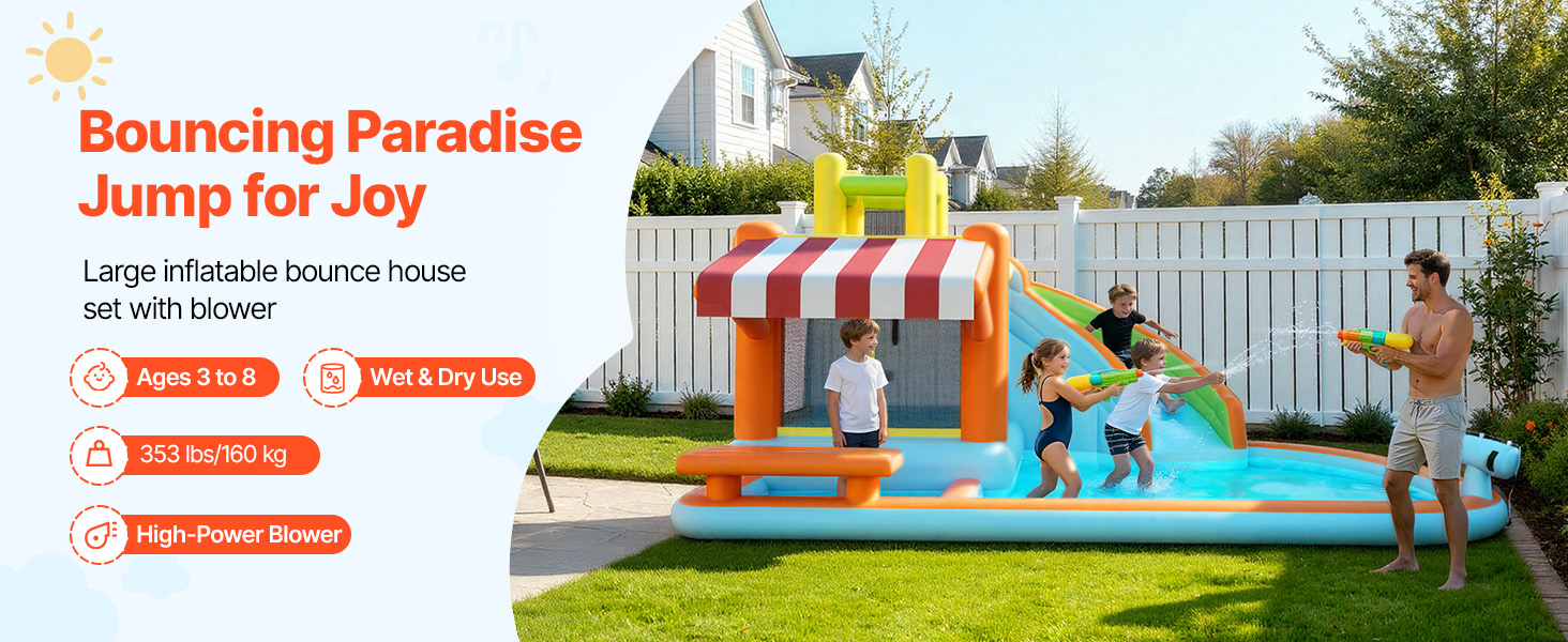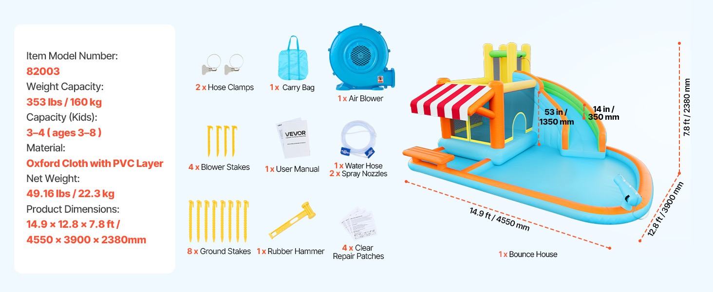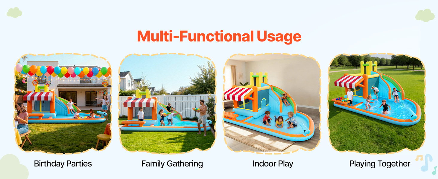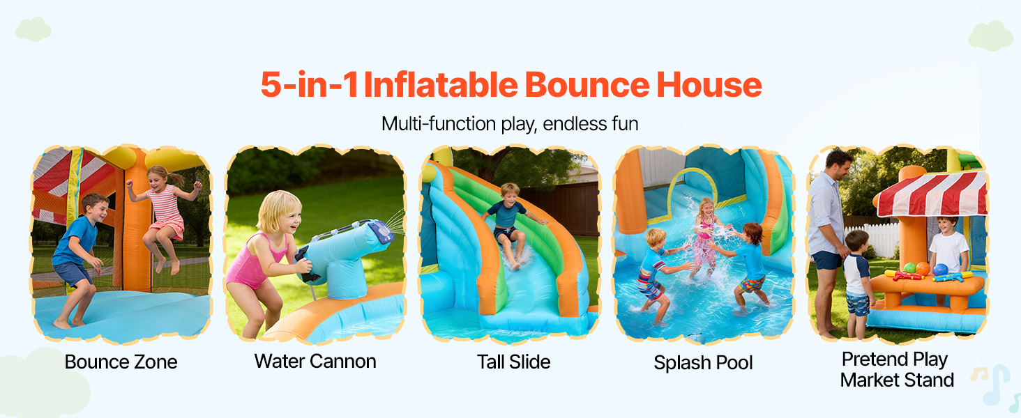 S veľkou skákacou plochou a hladkou šmýkačkou ponúka tento nafukovací hrad deťom a rodinám viacero spôsobov, ako si užiť spoločnú zábavu. Inovatívny stánok s hračkami dodáva interaktívnu zábavu a umožňuje deťom užiť si hravé chvíle a skupinové aktivity s priateľmi počas hry vonku.