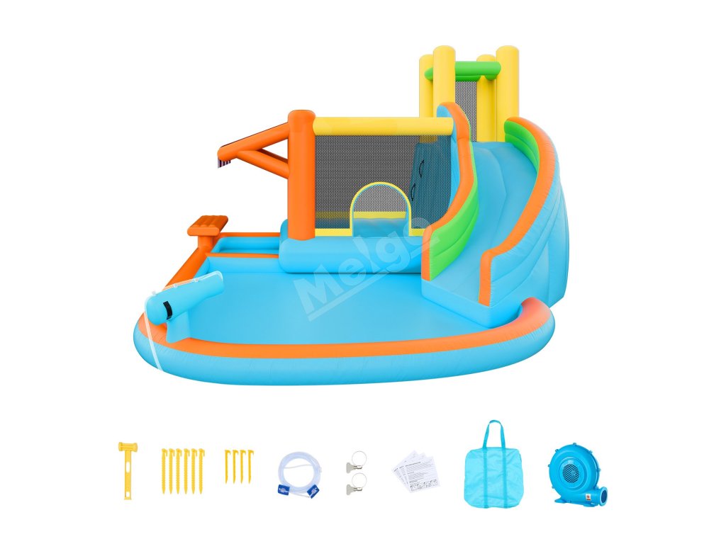 Náš nafukovací skákací hrad na suché aj mokré použitie je ideálny na narodeniny, letné posedenia a každodennú zábavu na dvore. Ponúka skákaciu plochu, bazénik a mnoho ďalšieho. Je vyrobený z hrubého materiálu Oxford 840D+420D a má zosilnené dvojité švy. Je vybavený sieťkou po celom obvode, ktorá zaisťuje dobrú viditeľnosť.
