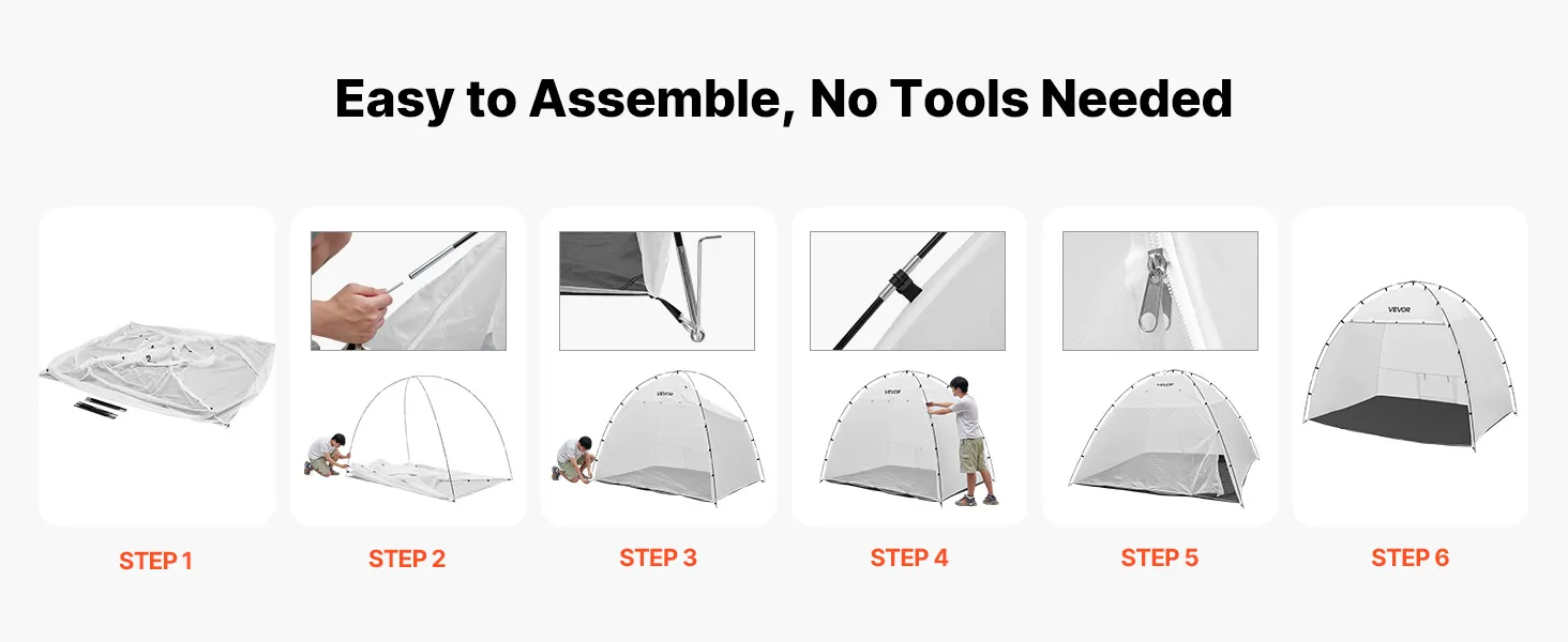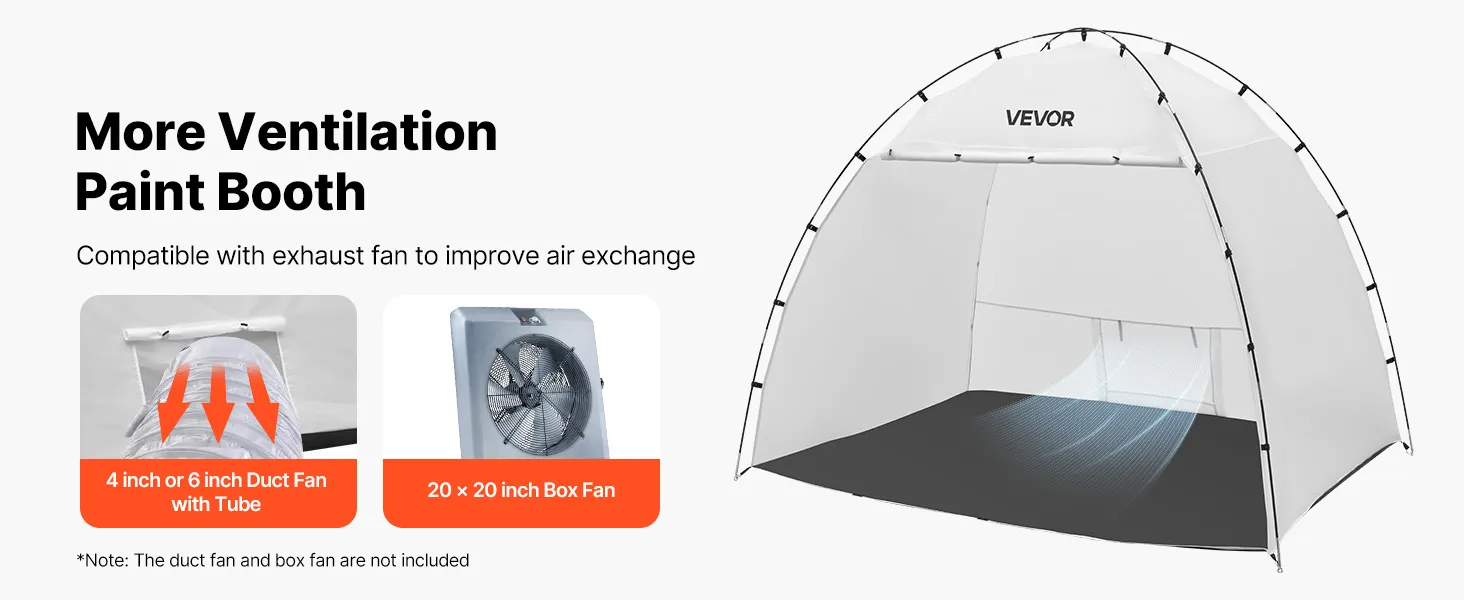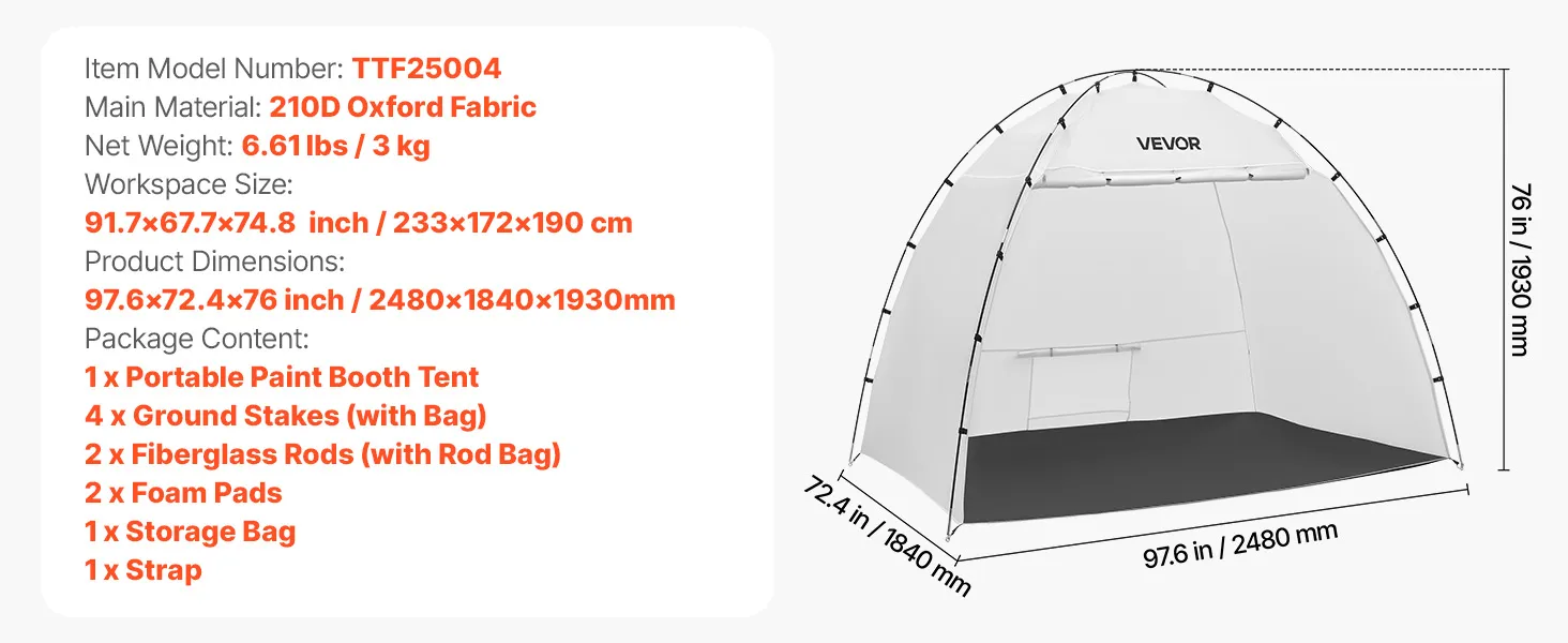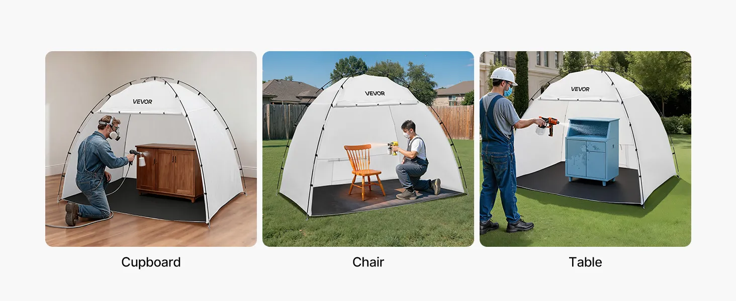 Táto prenosná lakovacia kabína je vybavená kolmi odolnými proti vetru na zvýšenie stability, rolovacími sieťovanými dverami s popruhmi na jednoduché používanie a zosilnenými dvojvrstvovými zipsami na hladký a dlhotrvajúci výkon.