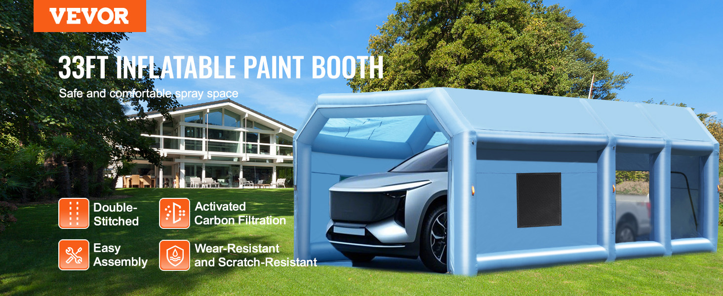 Nafukovacia striekacia kabína vybavená dvojvrstvovou filtračnou bavlnou vrátane primárneho filtra a filtra s aktívnym uhlím zabraňuje úniku škodlivých plynov a zabezpečuje neprerušované maľovanie. Filtračné okná sú navrhnuté s odnímateľnými suchými zipsami, čo umožňuje ich kedykoľvek vymeniť.