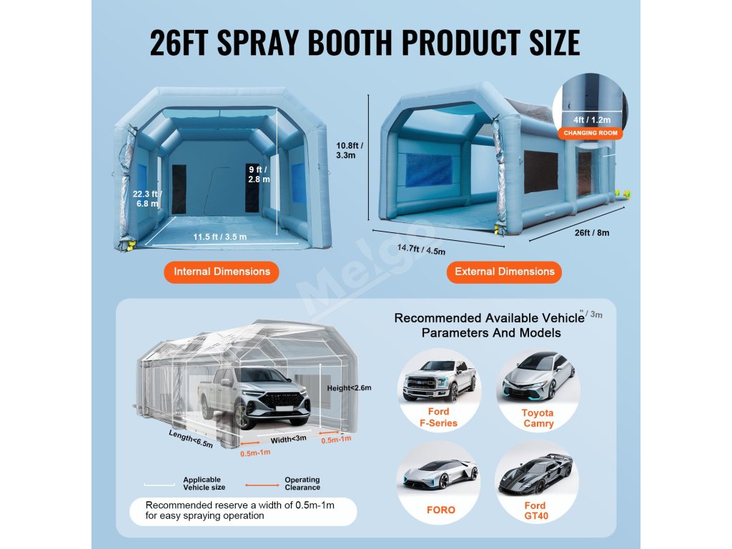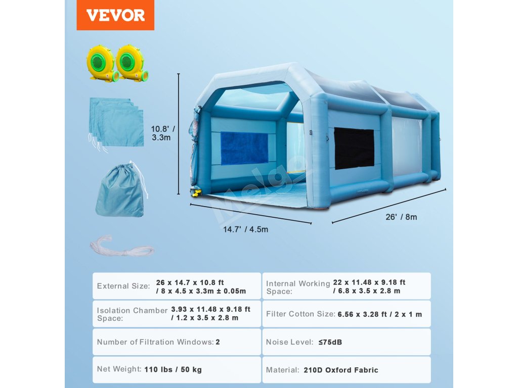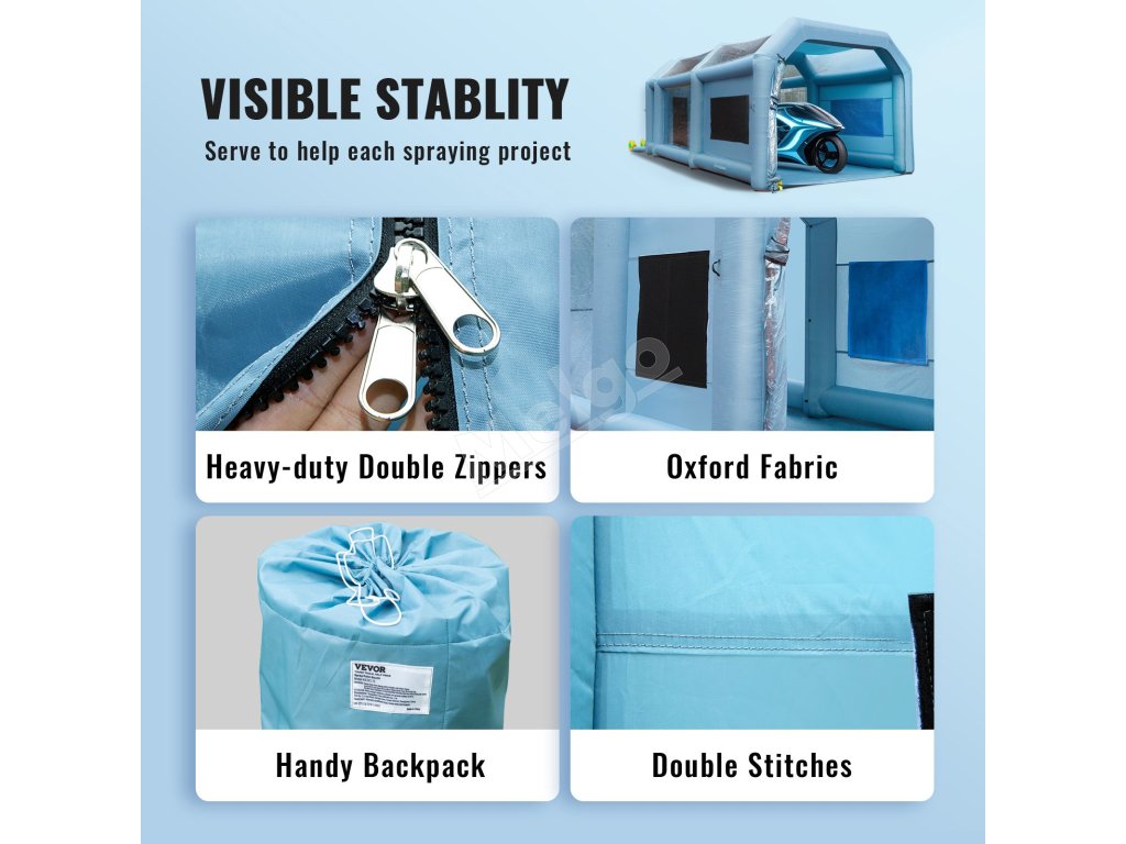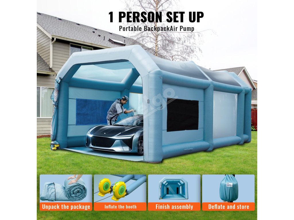 Nafukovací lakovací stan 792×457×335 cm s filtrom, 2 ventilátory