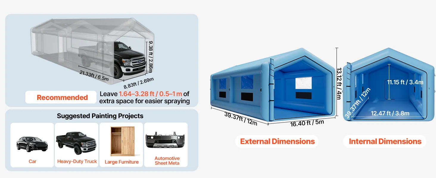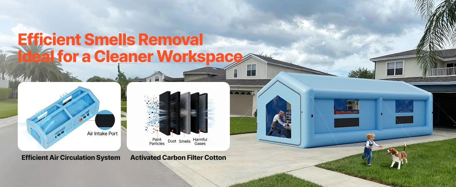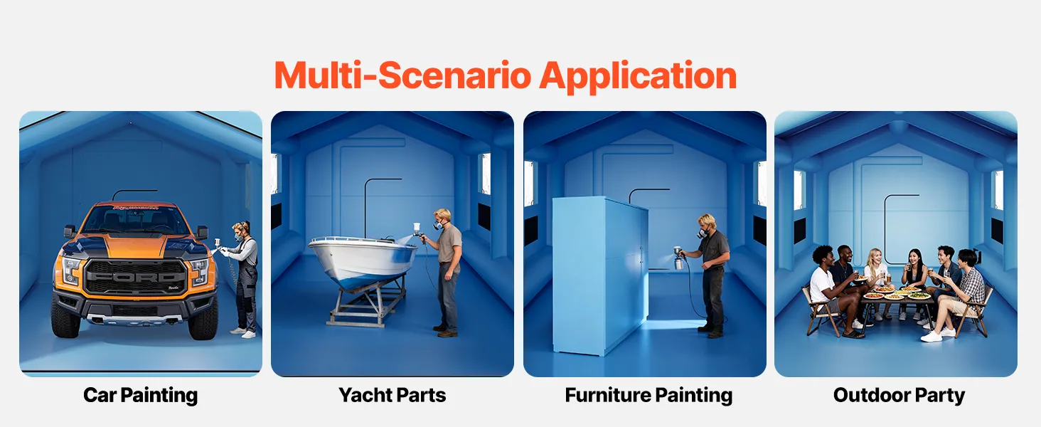 Naša nafukovacia striekacia kabína je vybavená vysoko výkonným filtračným systémom pre čistý pracovný priestor. Je vyrobená z prvotriedneho materiálu s dvojito prešitými švami pre dlhú životnosť. Jednoduché nastavenie pre jednu osobu. Prenosná konštrukcia funguje kdekoľvek. Nový vonkajší vzhľad zlepšuje vzhľad a znižuje hromadenie vody.