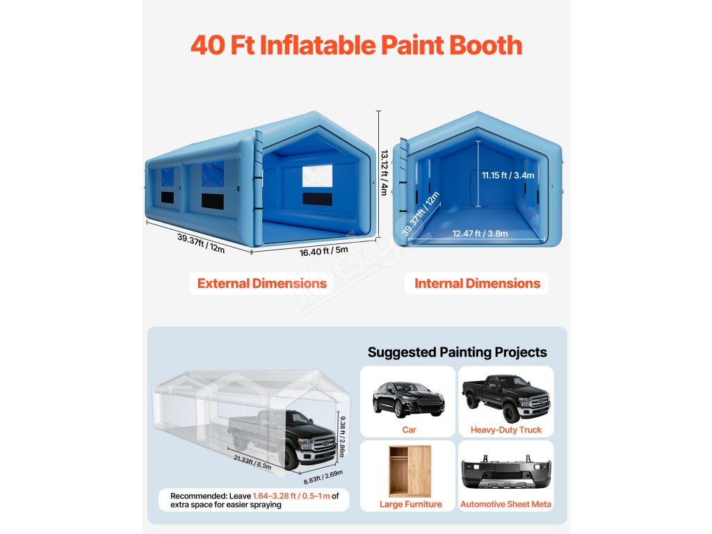 Naša nafukovacia striekacia kabína je vybavená vysoko výkonným filtračným systémom pre čistý pracovný priestor. Je vyrobená z prvotriedneho materiálu s dvojito prešitými švami pre dlhú životnosť. Jednoduché nastavenie pre jednu osobu. Prenosná konštrukcia funguje kdekoľvek. Nový vonkajší vzhľad zlepšuje vzhľad a znižuje hromadenie vody.