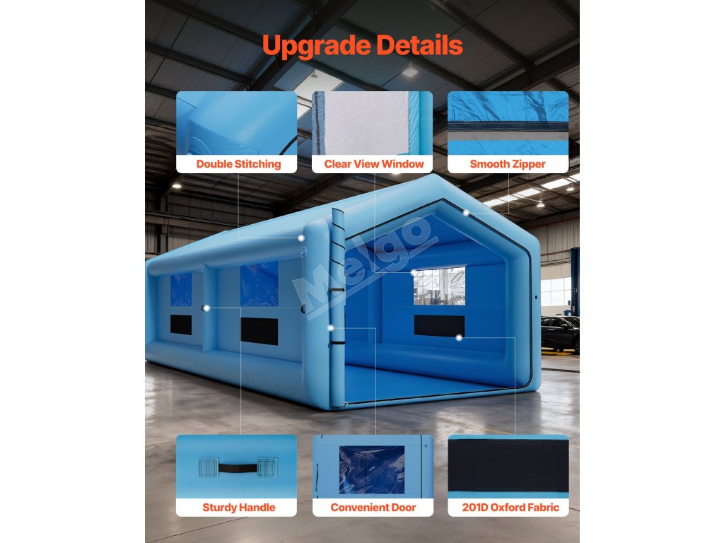 Okno je vyrobené zo zhrubnutého PVC odolného proti poškriabaniu pre krištáľovo čistú viditeľnosť. Naša nafukovacia lakovacia kabína poskytuje jasný, nerušený výhľad na váš projekt, aby ste mohli sledovať detaily a zaistiť bezchybnú, rovnomernú povrchovú úpravu.