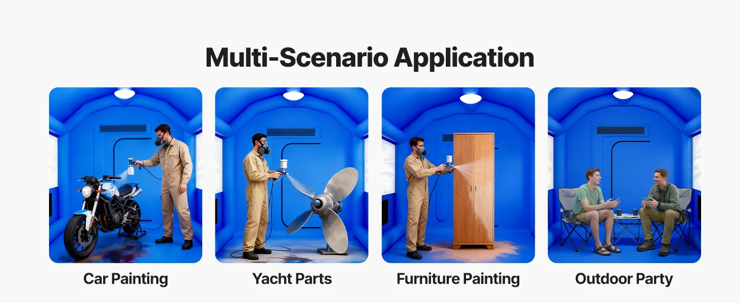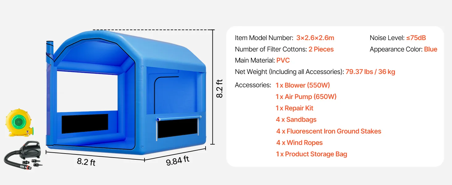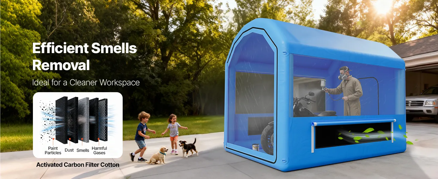 Naša nafukovacia striekacia kabína je vybavená vysoko výkonným filtračným systémom pre čistý pracovný priestor. Je vyrobená z prvotriedneho materiálu s dvojito prešitými švami pre dlhú životnosť. Jednoduché nastavenie pre jednu osobu. Prenosná konštrukcia funguje kdekoľvek. Nový vonkajší vzhľad zlepšuje vzhľad a znižuje hromadenie vody.