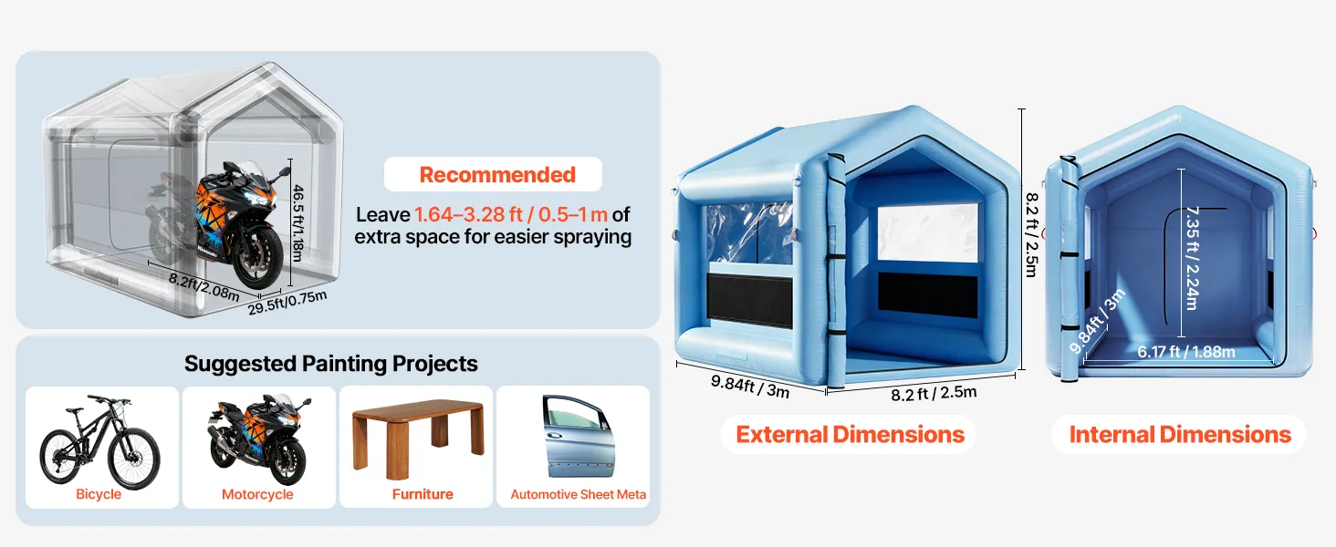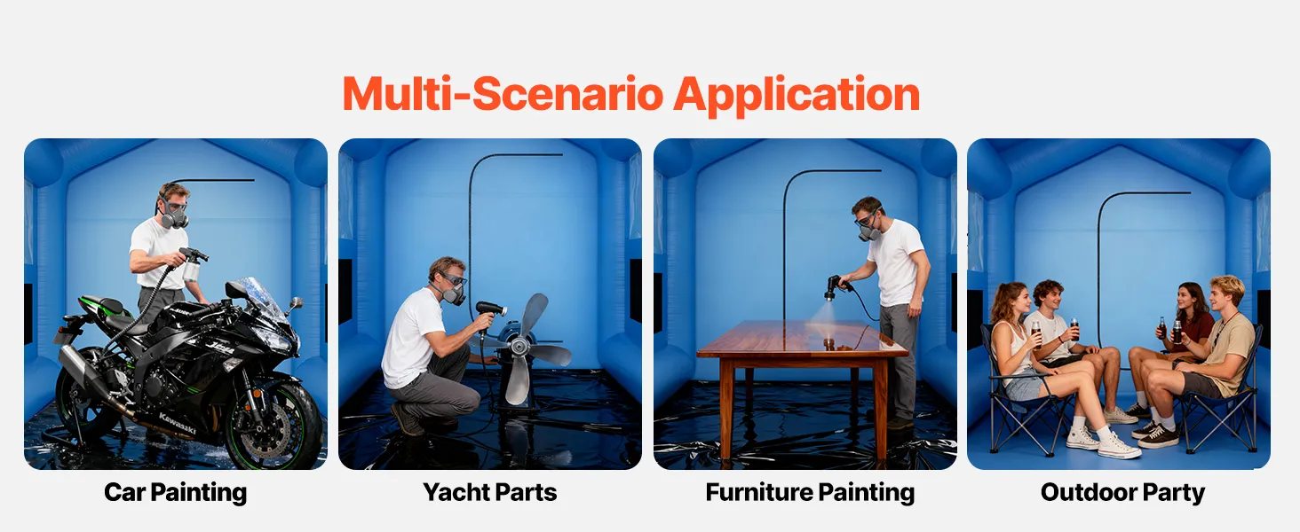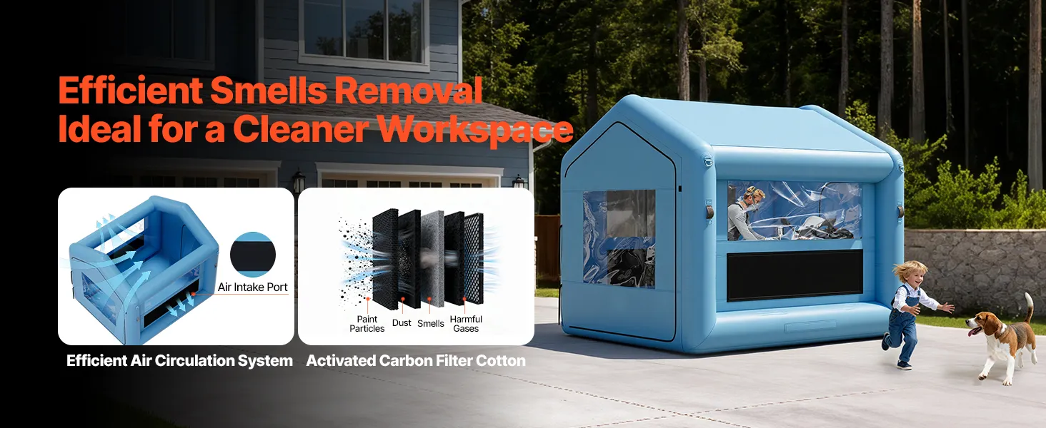Naša nafukovacia striekacia kabína je vybavená vysoko výkonným filtračným systémom pre čistý pracovný priestor. Je vyrobená z prvotriedneho materiálu s dvojito prešitými švami pre dlhú životnosť. Jednoduché nastavenie pre jednu osobu. Prenosná konštrukcia funguje kdekoľvek. Nový vonkajší vzhľad zlepšuje vzhľad a znižuje hromadenie vody.