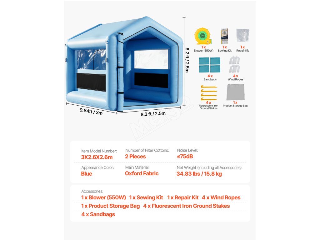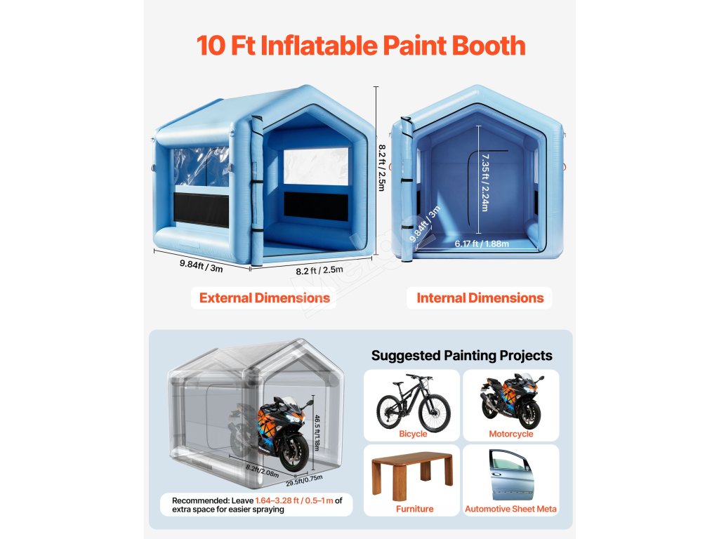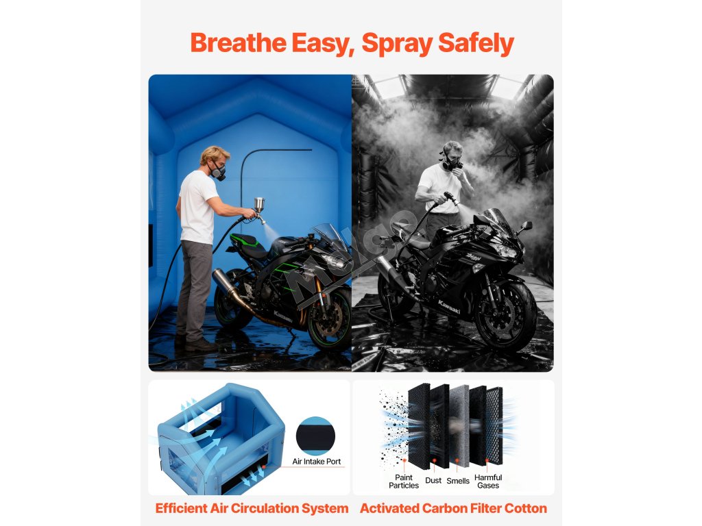 Naša nafukovacia striekacia kabína je vybavená vysoko výkonným filtračným systémom pre čistý pracovný priestor. Je vyrobená z prvotriedneho materiálu s dvojito prešitými švami pre dlhú životnosť. Jednoduché nastavenie pre jednu osobu. Prenosná konštrukcia funguje kdekoľvek. Nový vonkajší vzhľad zlepšuje vzhľad a znižuje hromadenie vody.