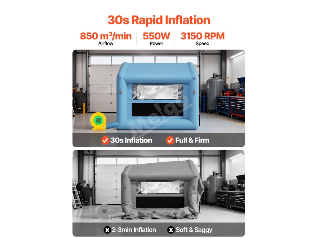 Nafukovacia lakovacia kabína 3×2.5×2.5 m, 550W ventilátor s filtrom