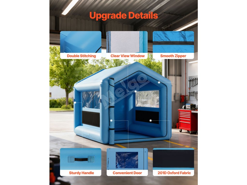Okno je vyrobené zo zhrubnutého PVC odolného proti poškriabaniu pre krištáľovo čistú viditeľnosť. Naša nafukovacia lakovacia kabína poskytuje jasný, nerušený výhľad na váš projekt, aby ste mohli sledovať detaily a zaistiť bezchybnú, rovnomernú povrchovú úpravu.