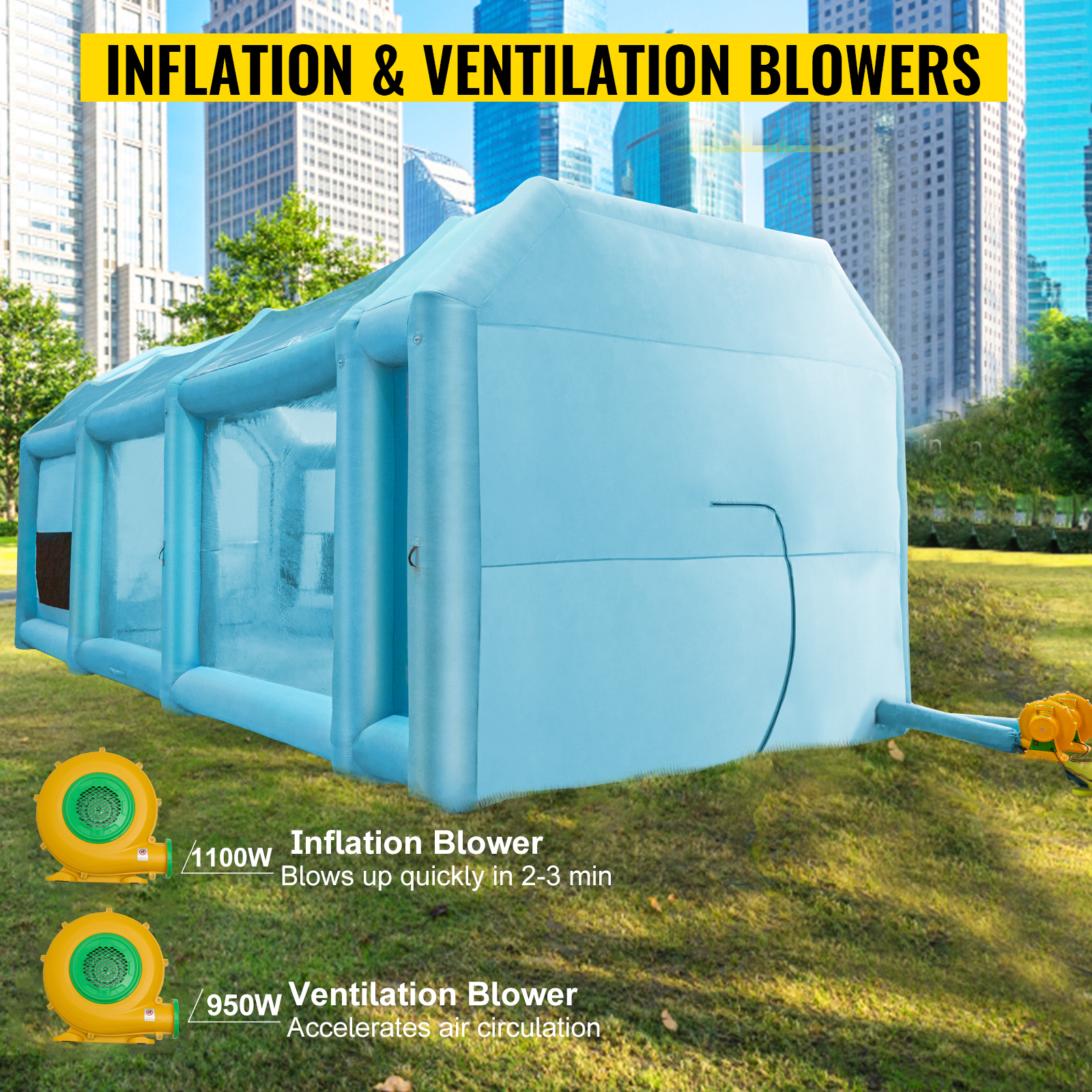Nafukovacia lakovacia kabína 39.4×16.4×13.1 ft, 2 ventilátory, filter