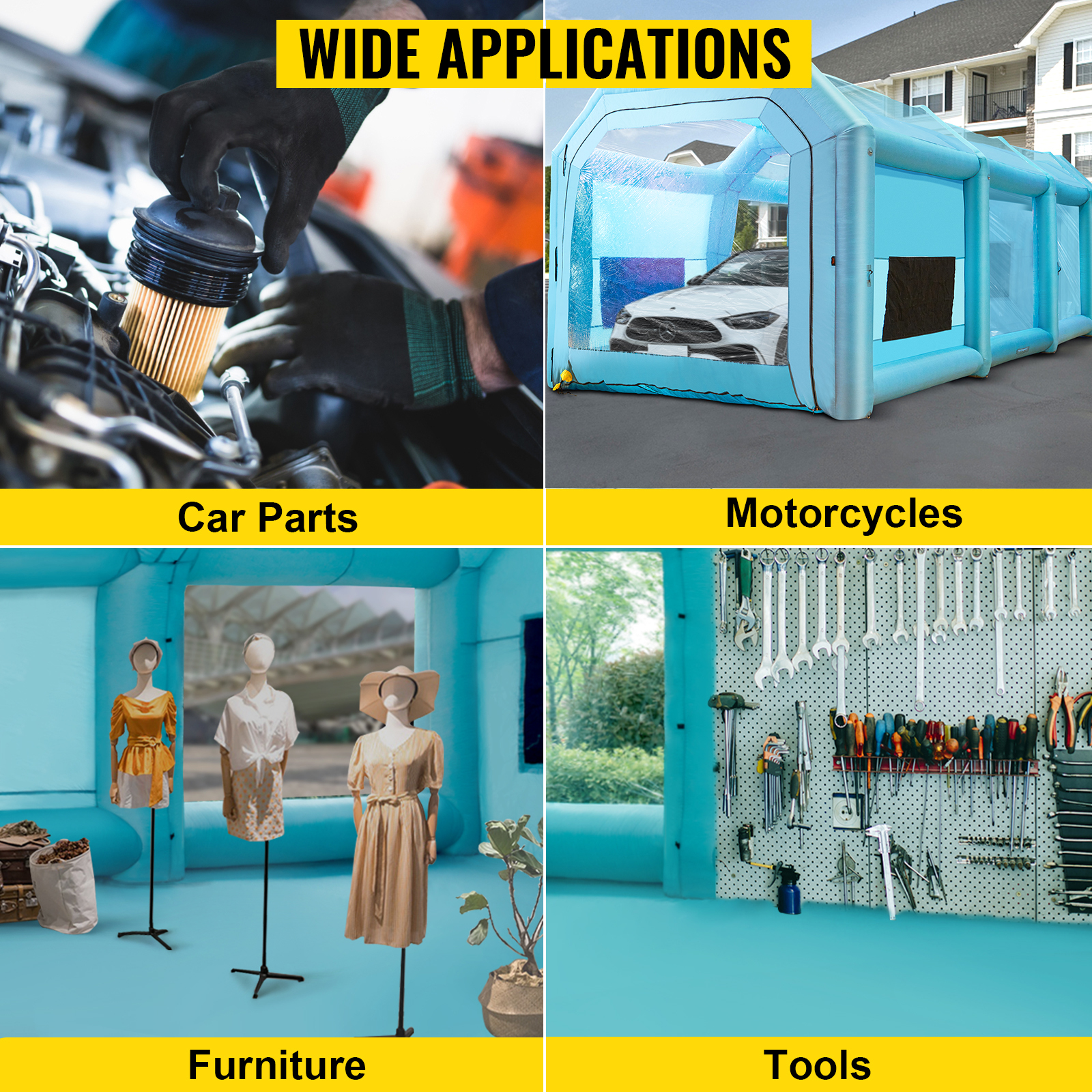 Táto odolná nafukovacia mobilná lakovacia kabína sa dá široko použiť na lakovanie a opravy automobilov, motocyklov, nábytku, náradia atď.