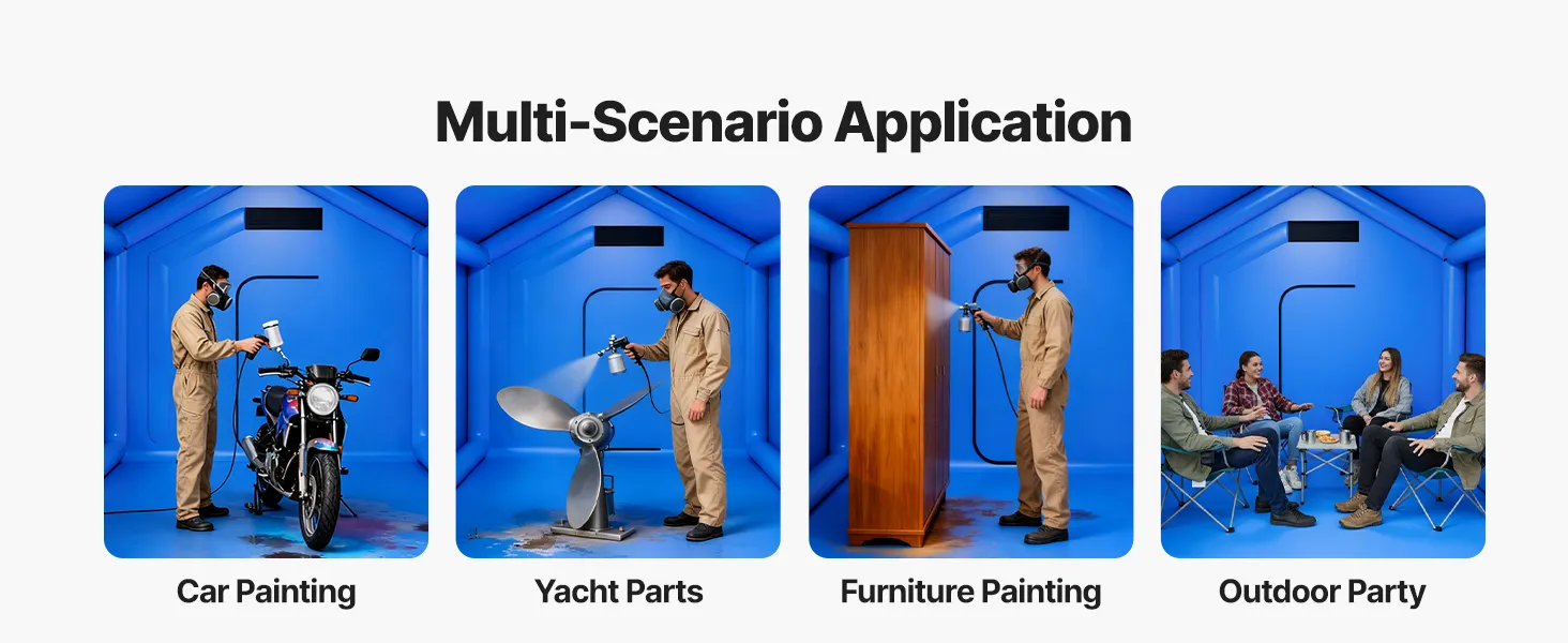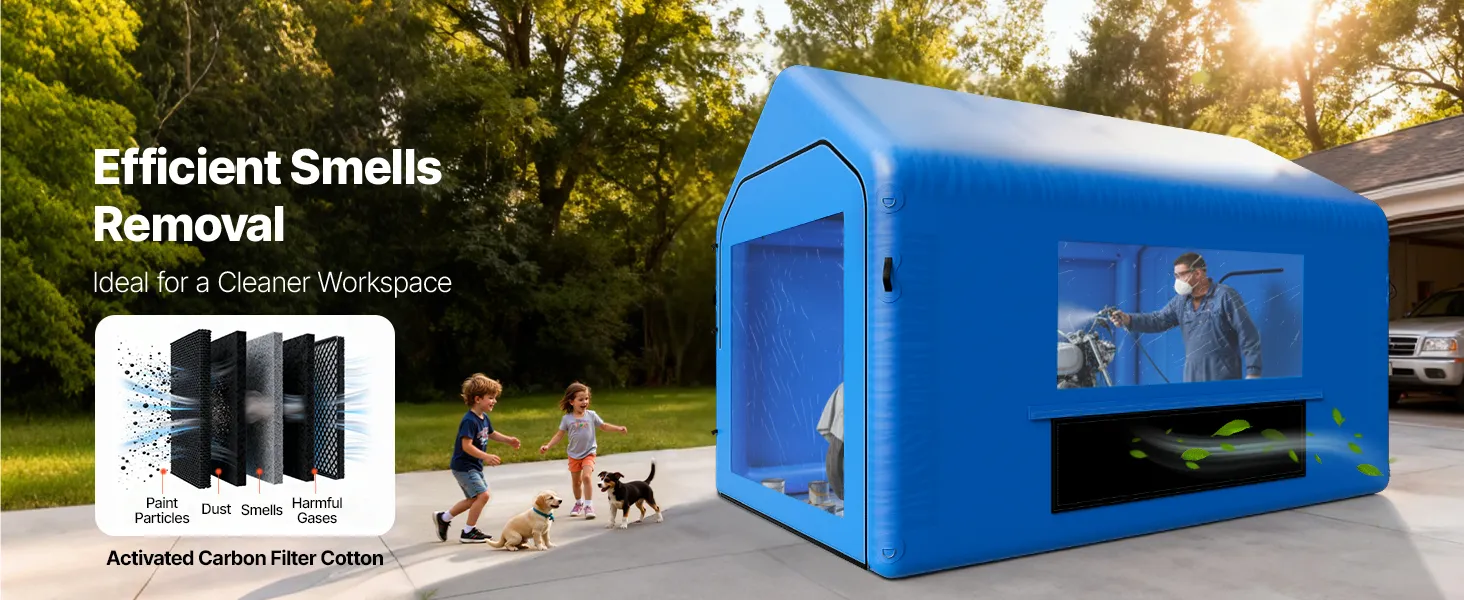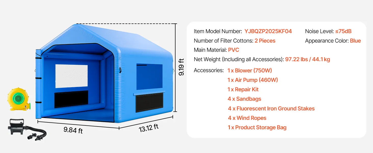 Naša nafukovacia striekacia kabína je vybavená vysoko výkonným filtračným systémom pre čistý pracovný priestor. Je vyrobená z prvotriedneho materiálu s dvojito prešitými švami pre dlhú životnosť. Jednoduché nastavenie pre jednu osobu. Prenosná konštrukcia funguje kdekoľvek. Nový vonkajší vzhľad zlepšuje vzhľad a znižuje hromadenie vody.
