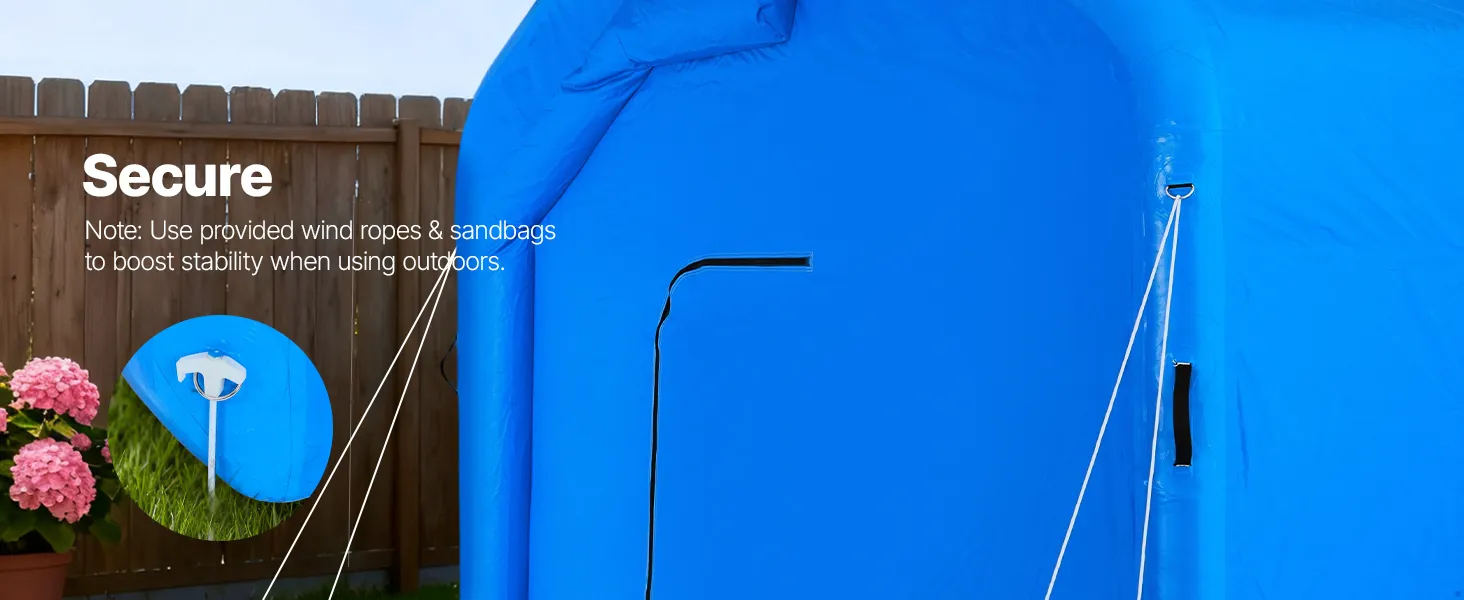 Vyfukovacia lakovacia kabína je viacnásobne prešitá pre vyššiu pevnosť. Unesie veľkú hmotnosť bez toho, aby sa roztrhla, vďaka čomu je preprava a skladovanie bezproblémové a bezpečné.