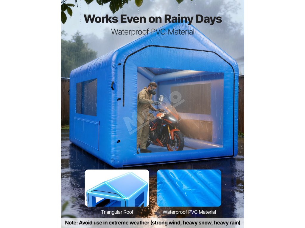 Nafukovacia lakovacia kabína 4×3×2.8 m, s ventilátorom 750 W