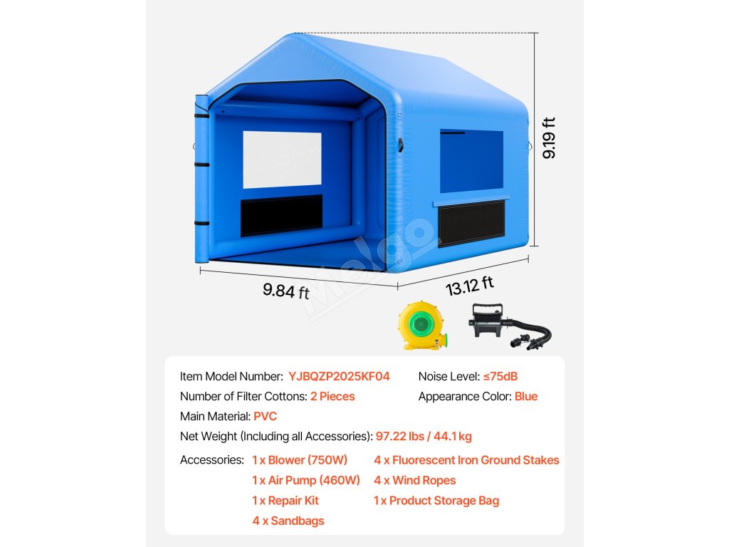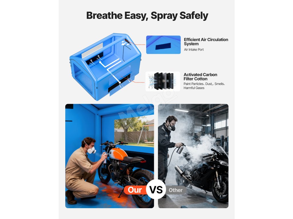 Naša nafukovacia striekacia kabína je vybavená vysoko výkonným filtračným systémom pre čistý pracovný priestor. Je vyrobená z prvotriedneho materiálu s dvojito prešitými švami pre dlhú životnosť. Jednoduché nastavenie pre jednu osobu. Prenosná konštrukcia funguje kdekoľvek. Nový vonkajší vzhľad zlepšuje vzhľad a znižuje hromadenie vody.