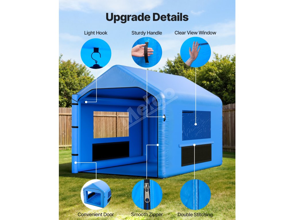 Okno je vyrobené zo zhrubnutého PVC odolného proti poškriabaniu pre krištáľovo čistú viditeľnosť. Naša nafukovacia lakovacia kabína poskytuje jasný, nerušený výhľad na váš projekt, aby ste mohli sledovať detaily a zaistiť bezchybnú, rovnomernú povrchovú úpravu.