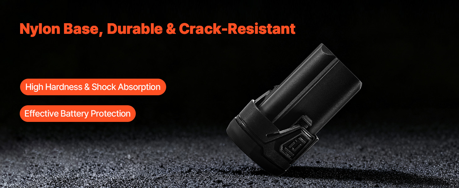 Tento 12V lítiový akumulátor, skonštruovaný s nylonovou základňou, poskytuje vysokú tvrdosť a odolnosť proti praskaniu. Vďaka konštrukcii pohlcujúcej nárazy je ochrana batérie účinná a predlžuje životnosť, čím sa ľahko vyrieši problém s poškodením batérie.