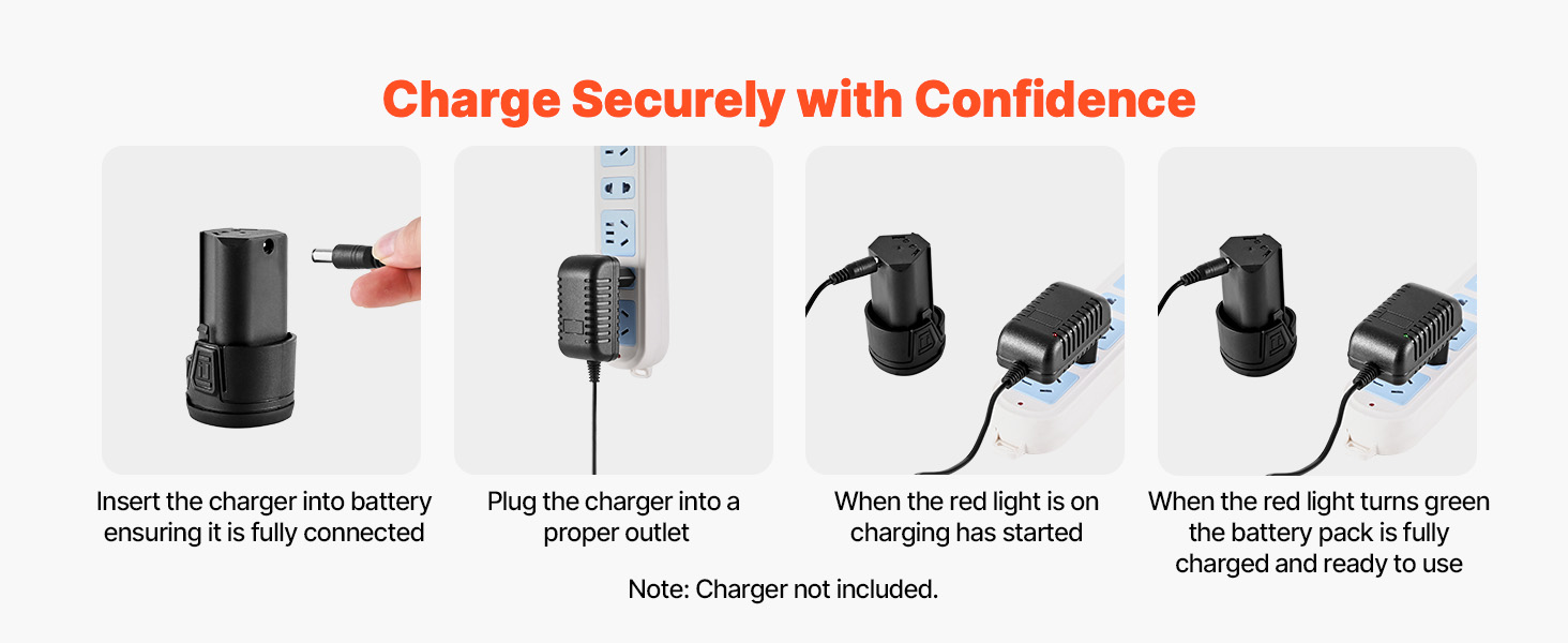 Výmena lítium-iónovej batérie vyžaduje len niekoľko jednoduchých krokov na nabitie a môžete ju používať, keď sa červená kontrolka rozsvieti na zeleno. Nabíjačku vložte do batérie a potom do zásuvky. Červená kontrolka signalizuje nabíjanie, zatiaľ čo zelená kontrolka signalizuje plné nabitie, vďaka čomu je obsluha jednoduchá.