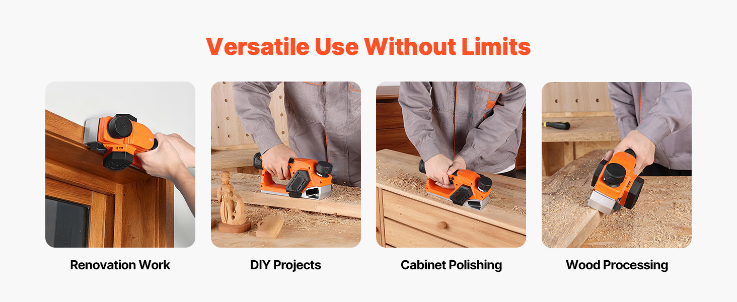 V spojení s elektrickým ručným hoblíkom VEVOR je tento lítiový akumulátor ideálny na renovačné práce, projekty pre domácich majstrov, leštenie skríň, opracovanie dreva a iné scenáre. Dokáže splniť vaše potreby kedykoľvek a kdekoľvek.