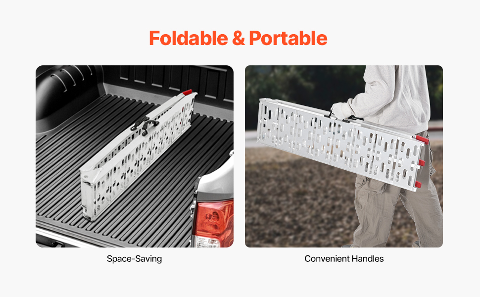 Rampa je vybavená rukoväťou na prenášanie a skladacou konštrukciou, takže keď sa nepoužíva, dá sa kompaktne zložiť, čo uľahčuje jej prenášanie, skladovanie a šetrí miesto na cestách.