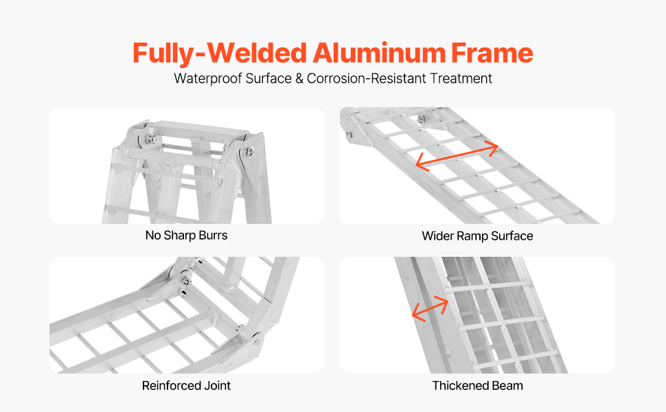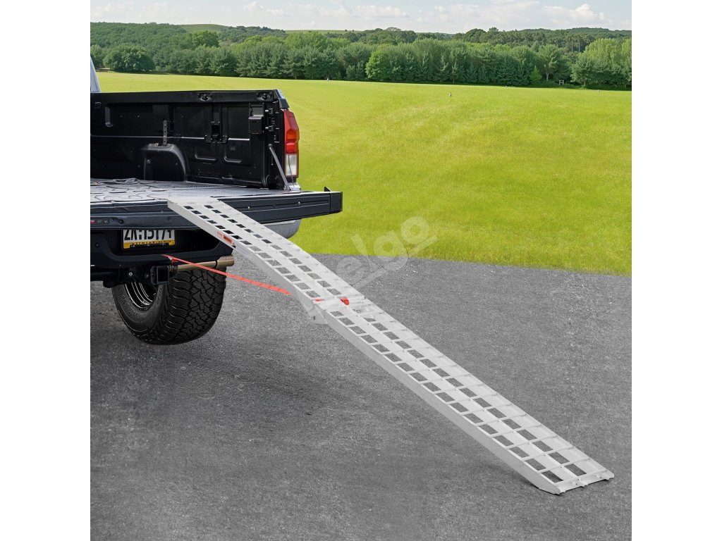 Na stabilnú prepravu malých štvorkoliek, vozidiel UTV, motocyklov a bicyklov má táto rampa odolnú celohliníkovú konštrukciu. Jej ľahká konštrukcia a silná nosnosť zaručujú spoľahlivý výkon, zatiaľ čo gumové pazúry a bezpečnostné popruhy ju udržujú pevne na mieste.