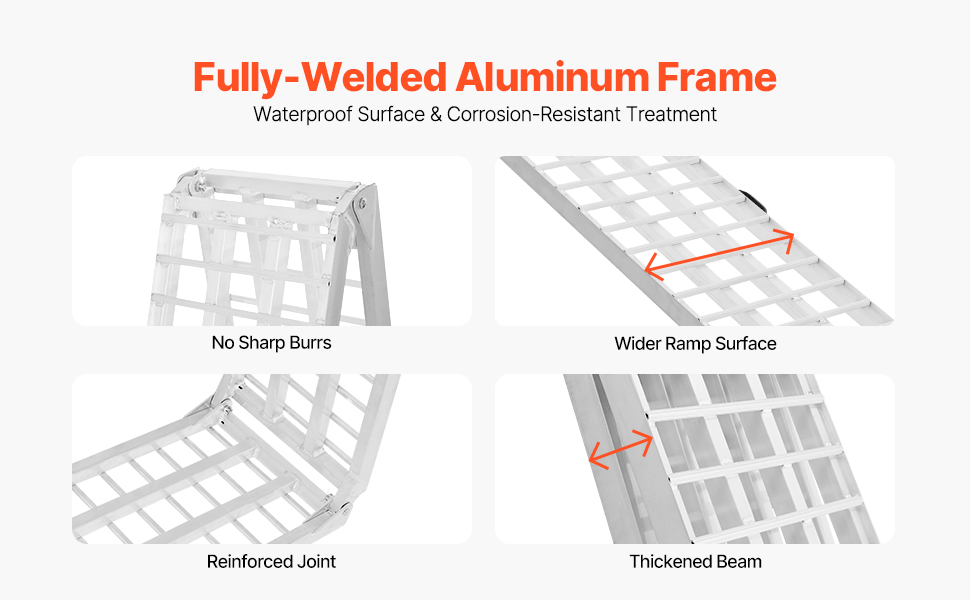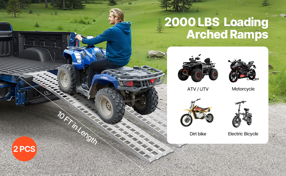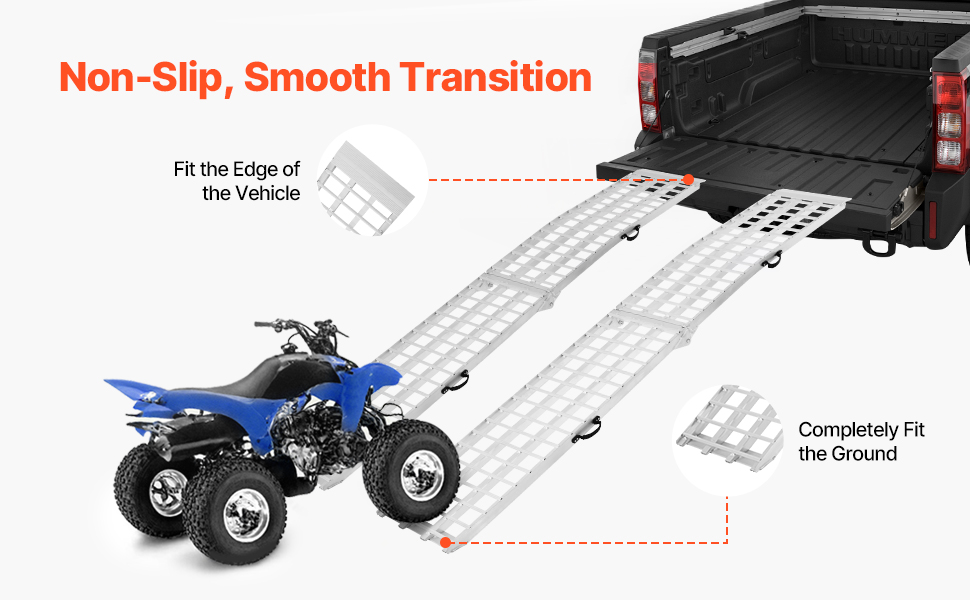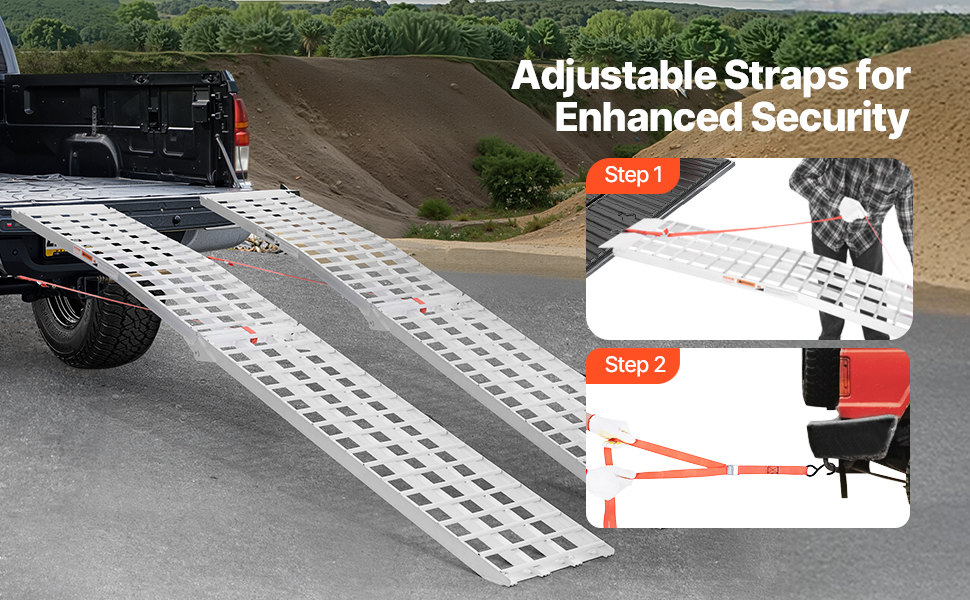Na stabilnú prepravu malých štvorkoliek, vozidiel UTV, motocyklov a bicyklov má táto rampa odolnú celohliníkovú konštrukciu. Jej ľahká konštrukcia a silná nosnosť zaručujú spoľahlivý výkon, zatiaľ čo gumové pazúry a bezpečnostné popruhy ju udržujú pevne na mieste.