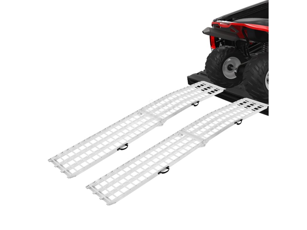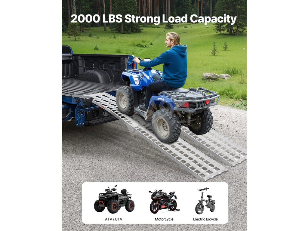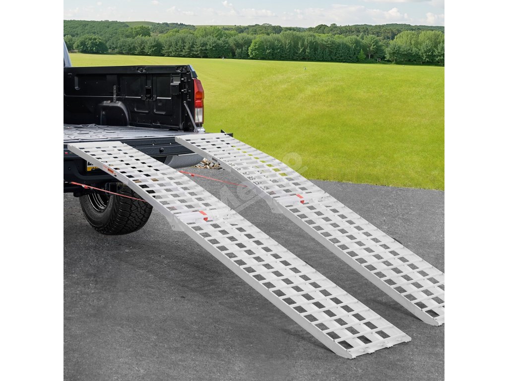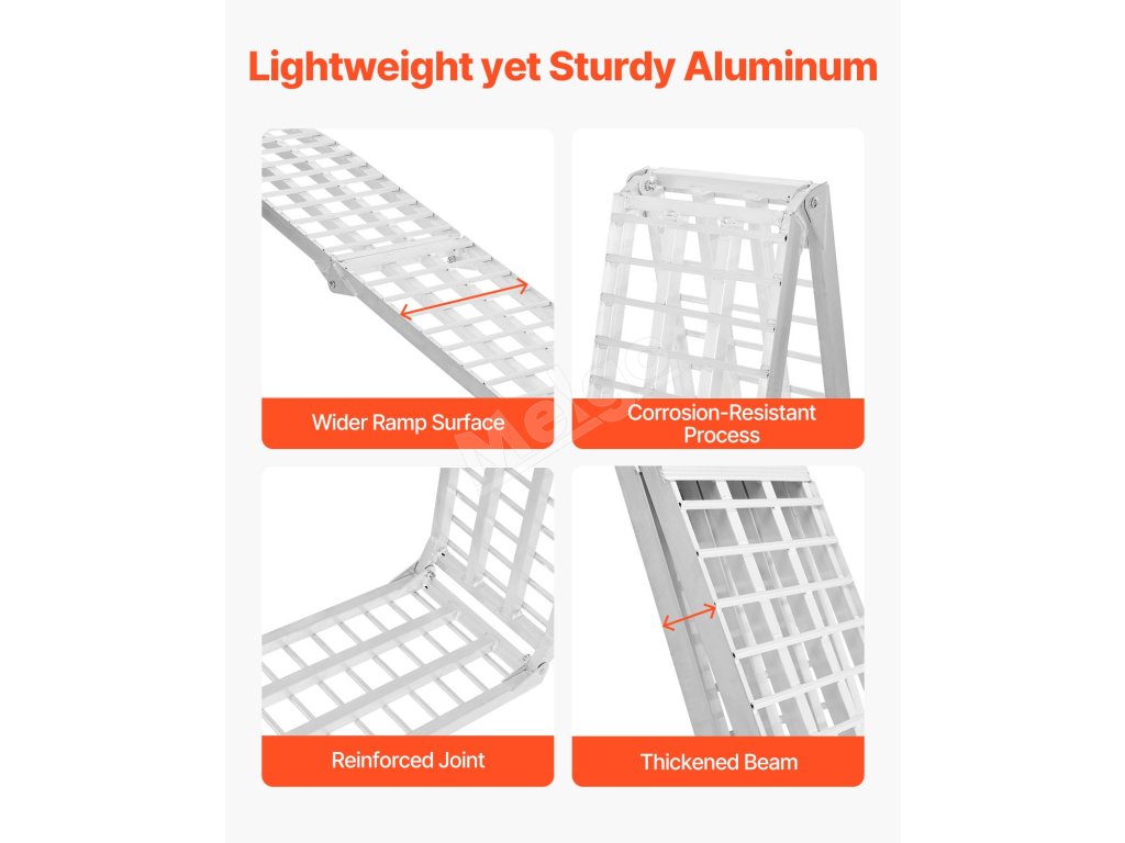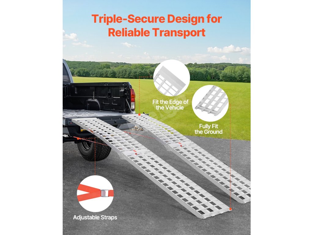 Na stabilnú prepravu malých štvorkoliek, vozidiel UTV, motocyklov a bicyklov má táto rampa odolnú celohliníkovú konštrukciu. Jej ľahká konštrukcia a silná nosnosť zaručujú spoľahlivý výkon, zatiaľ čo gumové pazúry a bezpečnostné popruhy ju udržujú pevne na mieste.