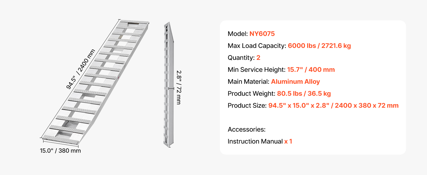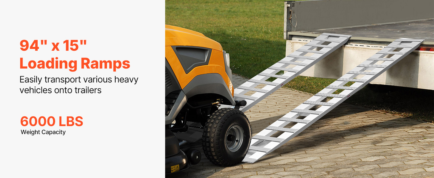 Táto nakladacia rampa s rozmermi 94 x 15 palcov sa vyznačuje vynikajúcou nosnosťou. Vďaka dodatočnej dĺžke zabezpečuje plynulejší prechod pri nakladaní a preprave štvorkoliek, vozidiel UTV, ručných vozíkov, kosačiek na trávu, traktorov na trávu (záhradných), motocyklov, terénnych vozidiel, invalidných vozíkov, a to aj na nerovnom teréne.
