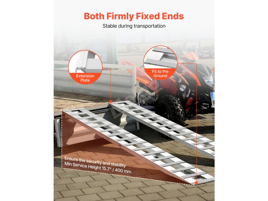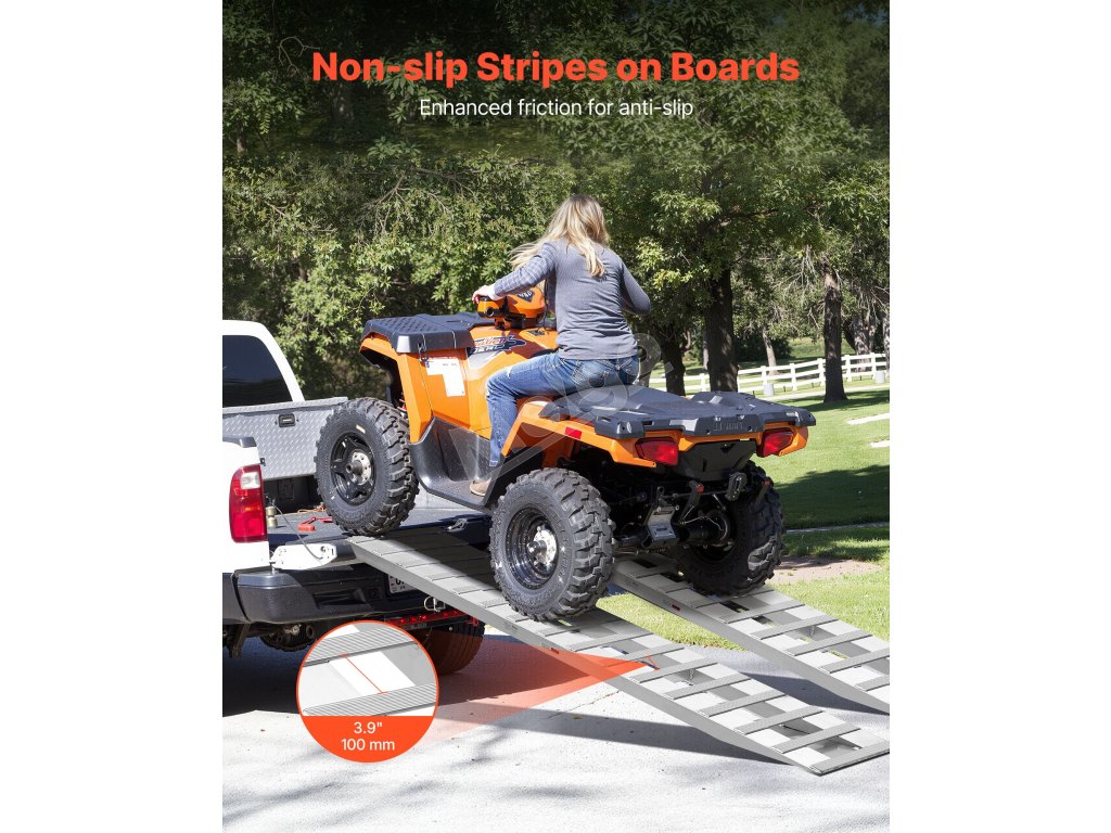 Táto nakladacia rampa s rozmermi 94 x 15 palcov sa vyznačuje vynikajúcou nosnosťou. Vďaka dodatočnej dĺžke zabezpečuje plynulejší prechod pri nakladaní a preprave štvorkoliek, vozidiel UTV, ručných vozíkov, kosačiek na trávu, traktorov na trávu (záhradných), motocyklov, terénnych vozidiel, invalidných vozíkov, a to aj na nerovnom teréne.