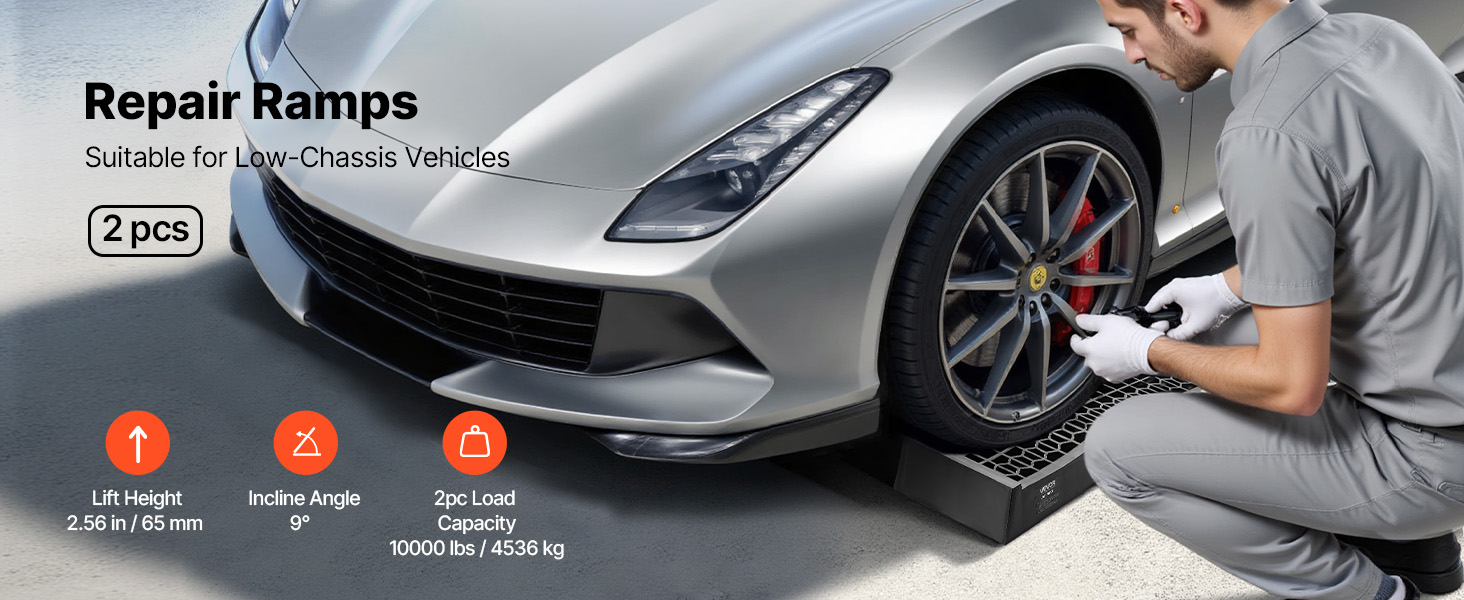 Servisné rampy pre auto 2 ks, nosnosť 9072 kg, zdvih 65 mm, prenosné