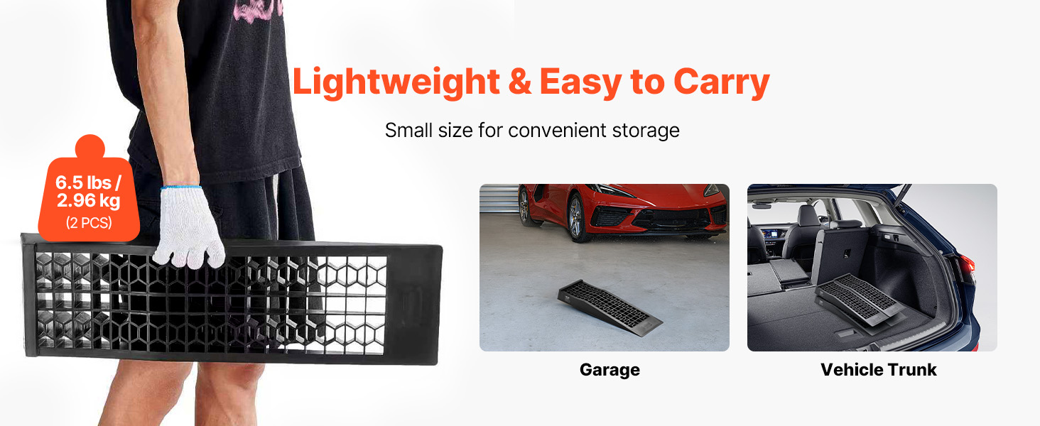 Tieto rampy na výmenu oleja sú vyrobené z materiálu PP, sú ľahké a ľahko sa prenášajú. Vďaka kompaktným rozmerom sú priestorovo úsporné a môžete ich v prípade potreby uložiť do garáže alebo kufra vozidla, aby ste k nim mali rýchly prístup.