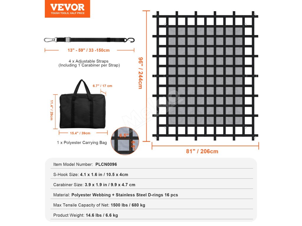 Nákladná sieť VEVOR 96" x 81": Nosnosť do 1500 libier