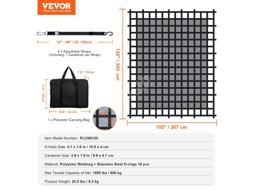 Nákladná sieť VEVOR 120" x 105": Nosnosť do 1500 libier