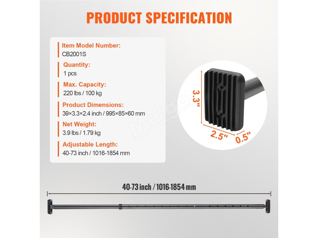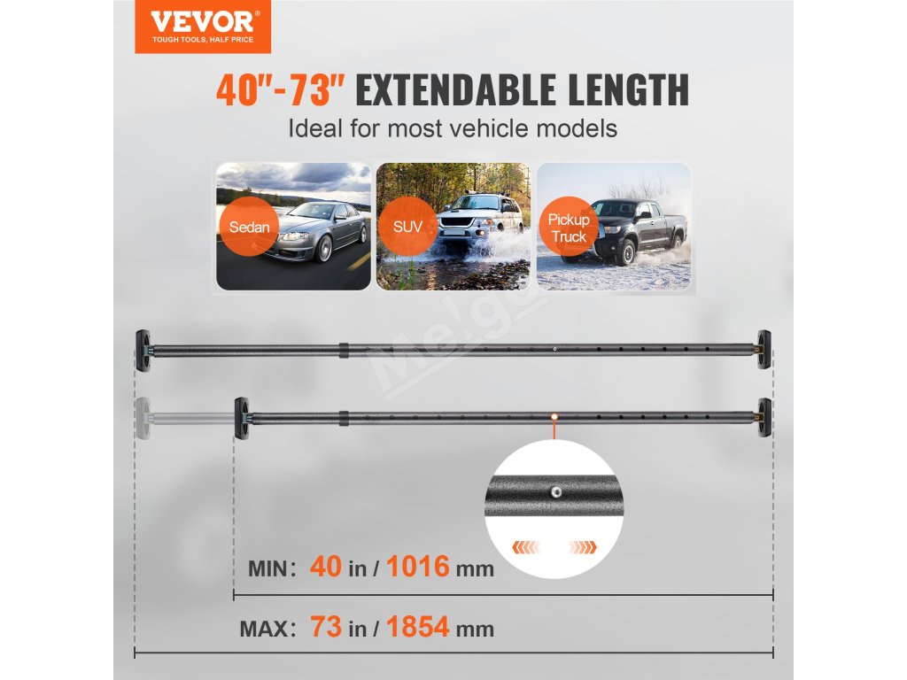 Nákladná tyč s nastaviteľným rozsahom dĺžky 40-73 palcov (1016-1854 mm). Je kompatibilná so širokou škálou modelov vozidiel vrátane domácich automobilov, pickupov, SUV, minitruckov a nákladných vozidiel.