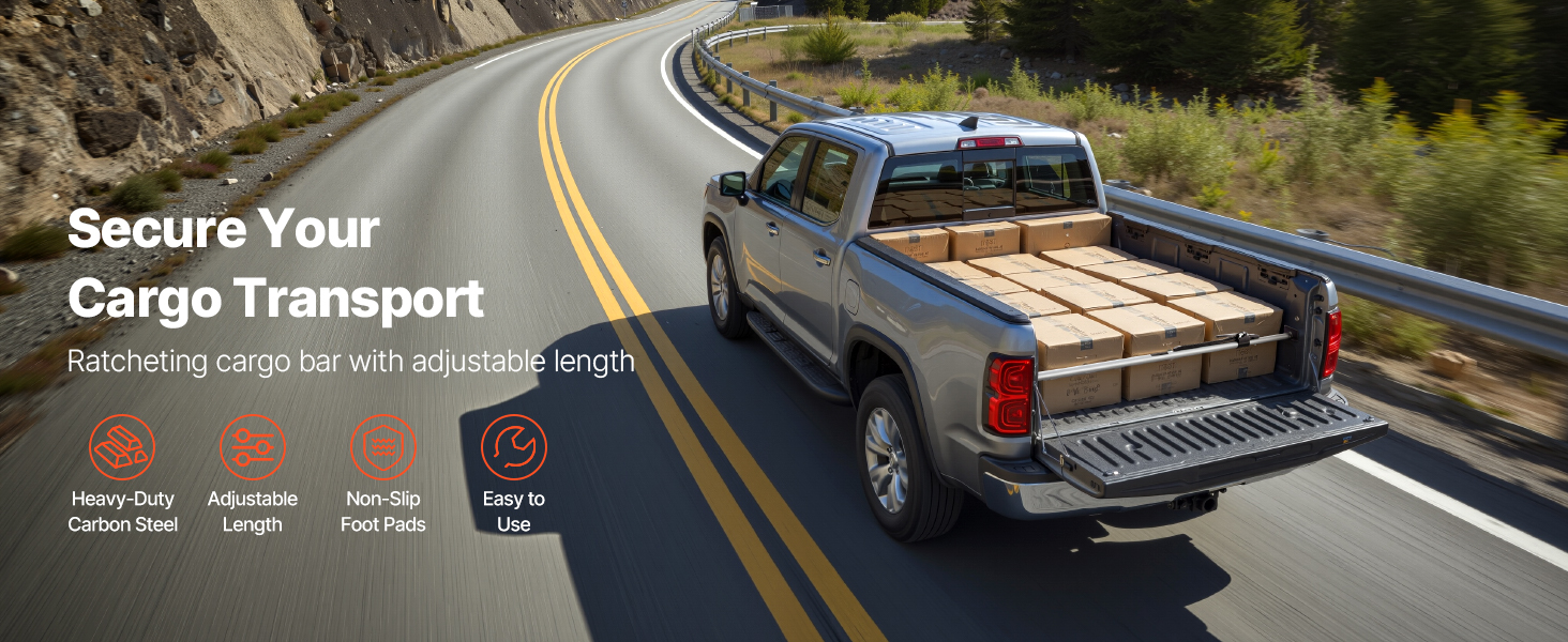 Už žiadne starosti s posúvaním nákladu! Nákladná tyč VEVOR s račňou pevne zaistí váš náklad na mieste a zabráni jeho posunutiu, prevráteniu alebo kolíziám spôsobeným náhlym zastavením, ostrými zákrutami alebo nerovnosťami na ceste. Pomáha minimalizovať riziko poškodenia a zabezpečuje bezpečnejšiu a stabilnejšiu prepravu.