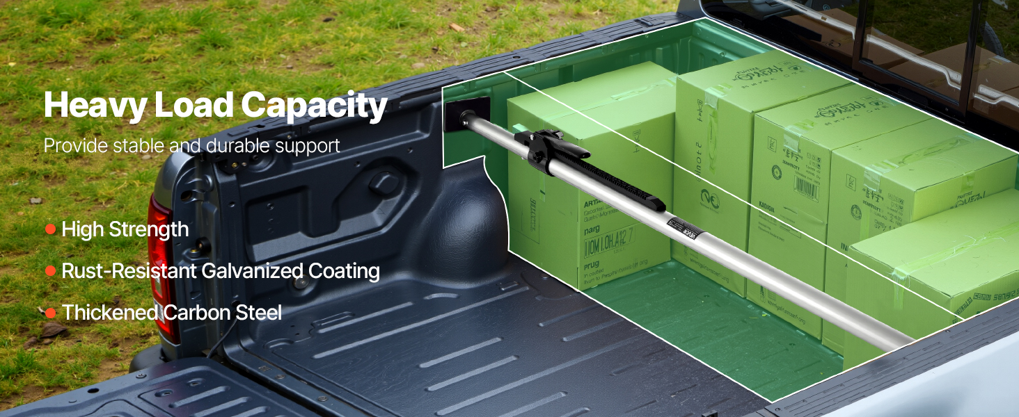 Táto teleskopická tyč na stabilizáciu nákladu pre pickupy je vyrobená zo zosilnenej uhlíkovej ocele a ponúka odolnosť proti stlačeniu a ohnutiu. Bezpečne podopiera ťažký náklad a zároveň zabraňuje deformácii alebo zlomeniu.