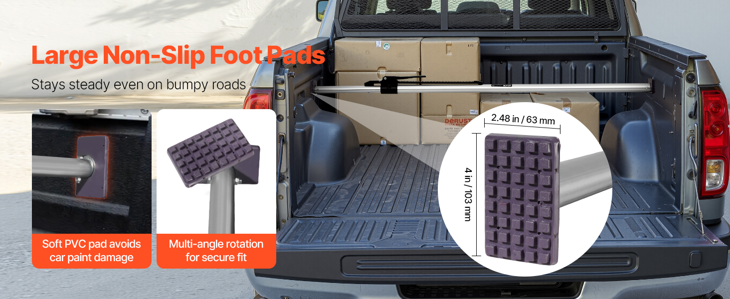 Zväčšené protišmykové podložky pod nohy poskytujú pevný záber aj na hrboľatých cestách. Mäkké PVC podložky chránia lak vozidla a zabraňujú posunu nákladnej tyče, čím udržiavajú náklad stabilný a bezpečný.