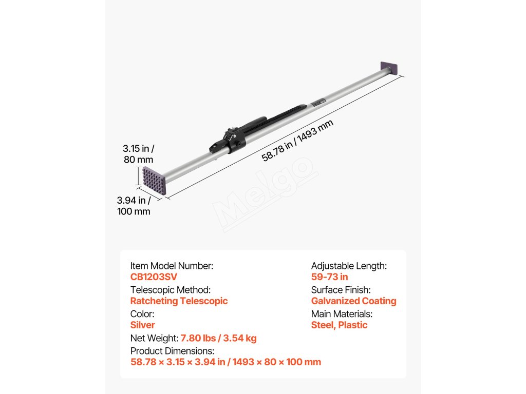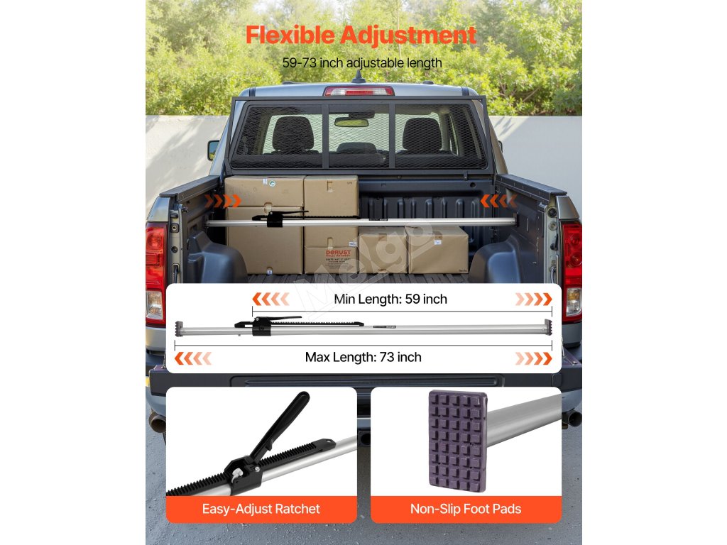 Voľne nastaviteľnú tyč stabilizátora nákladu môžete podľa potreby predĺžiť alebo zasunúť v rozsahu od 59 do 73 palcov, čím zabezpečíte optimálne upevnenie nákladu.