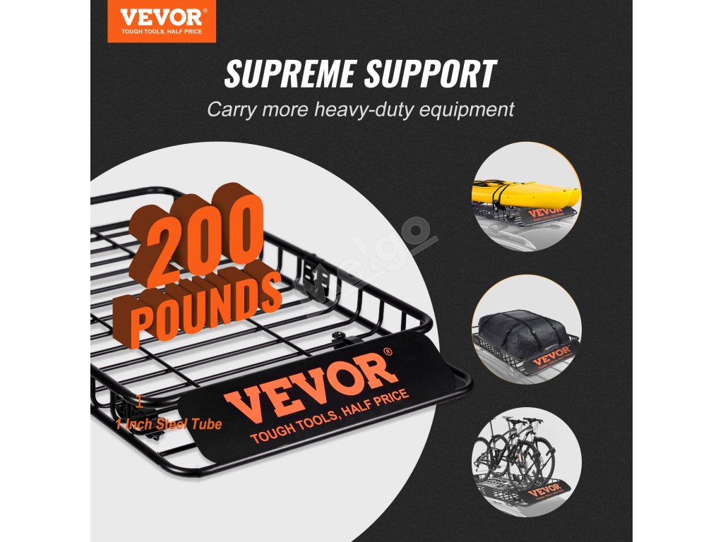 Košík na náklad na strešný nosič VEVOR je vyrobený z vysokokvalitnej ocele Q195. To zaručuje, že zvládne ťažký náklad až do hmotnosti 200 kg. Vďaka pevnej konštrukcii, nástreku a galvanickej úprave je odolný voči opotrebovaniu. Je dostatočne odolný na to, aby zvládol náročné poveternostné podmienky a drsné cesty. Náš nákladný kôš na strešný nosič bude ideálny na prepravu ťažkých predmetov. Či už prevážate kempingovú výbavu, športové vybavenie alebo ďalšiu batožinu, tento kôš má všetko, čo potrebujete na prepravu vo vozidle alebo na ňom.