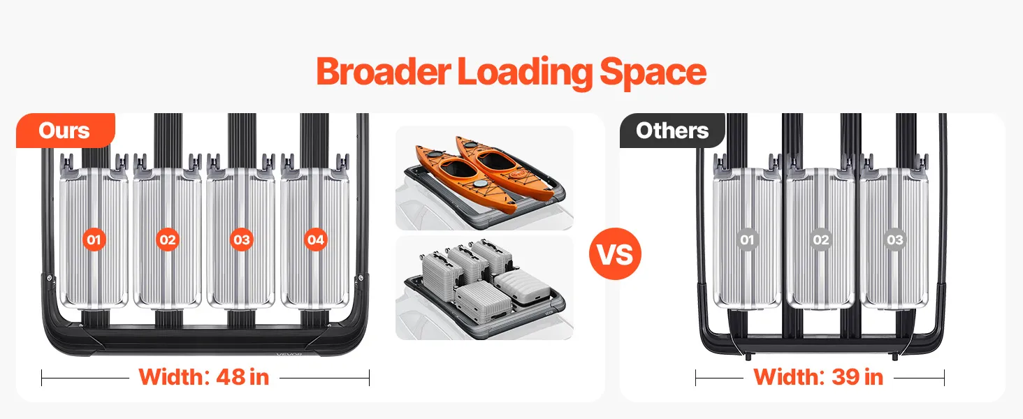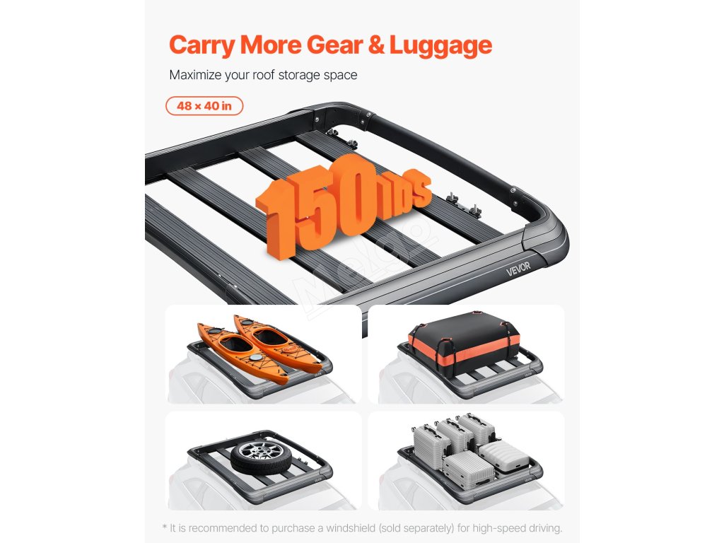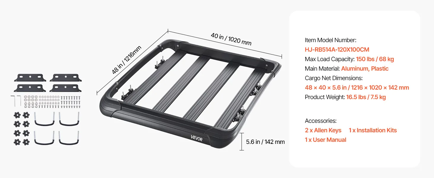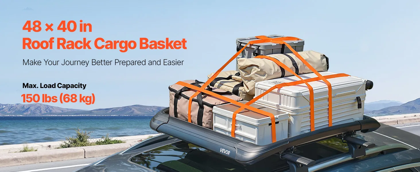 Maximalizujte vnútorný priestor pre svoju rodinu a priateľov. S vonkajšími rozmermi 48 x 40 x 5,6 palca poskytuje tento strešný nosičový kôš dostatok priestoru pre vaše vybavenie. Je skonštruovaný odolne s rámom zo zliatiny ocele a unesie až 150 kg, takže je ideálny na prepravu predmetov na sťahovanie, cestovanie alebo kempovanie.