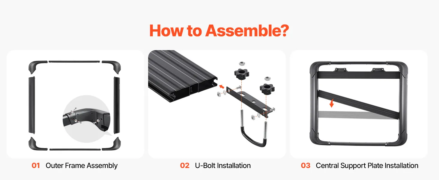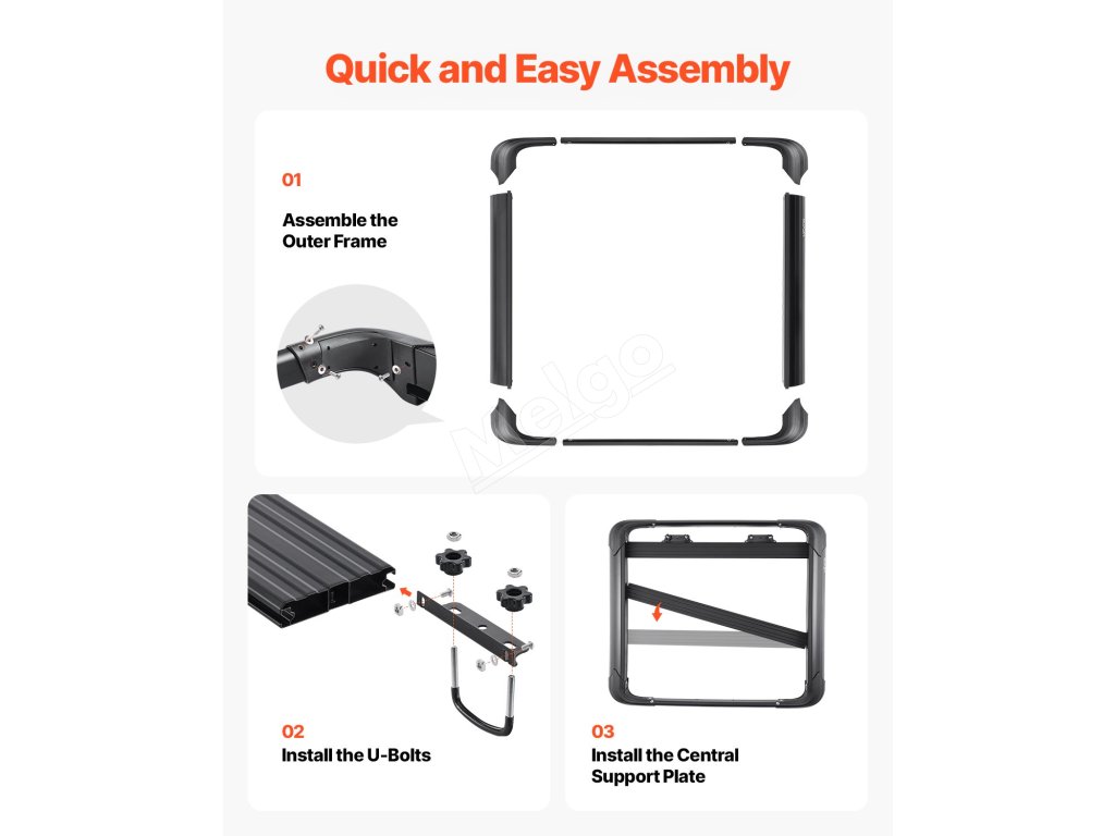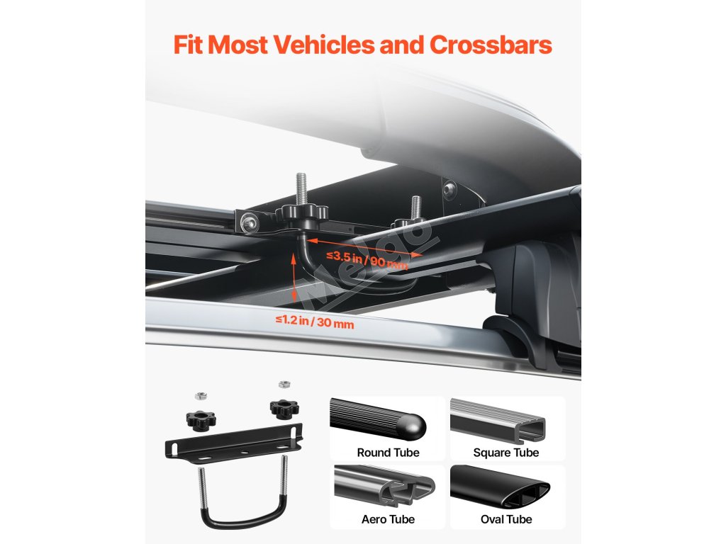 Vďaka štyrom univerzálnym U-skrutkám je inštalácia a odpojenie hračka. Tento nosič nákladu na strešný nosič sa ľahko prispôsobí väčšine strešných priečnikov. Dodané skrutky umožňujú jednoduchú montáž.