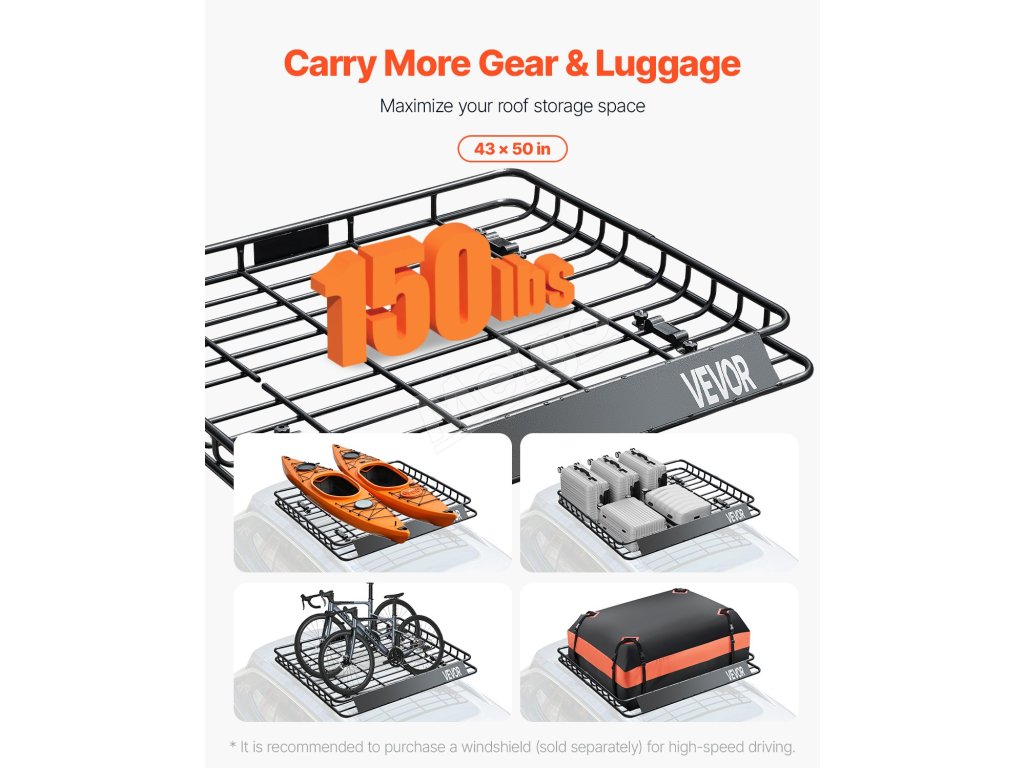Maximalizujte vnútorný priestor pre svoju rodinu a priateľov. Tento strešný nosič s vonkajšími rozmermi 43 x 50 x 4,1 palca poskytuje dostatok priestoru pre váš výstroj. Je vyrobený z odolnej zliatiny s oceľovým rámom a unesie až 150 kg, takže je ideálny na prepravu predmetov na sťahovanie, cestovanie alebo kempovanie.
